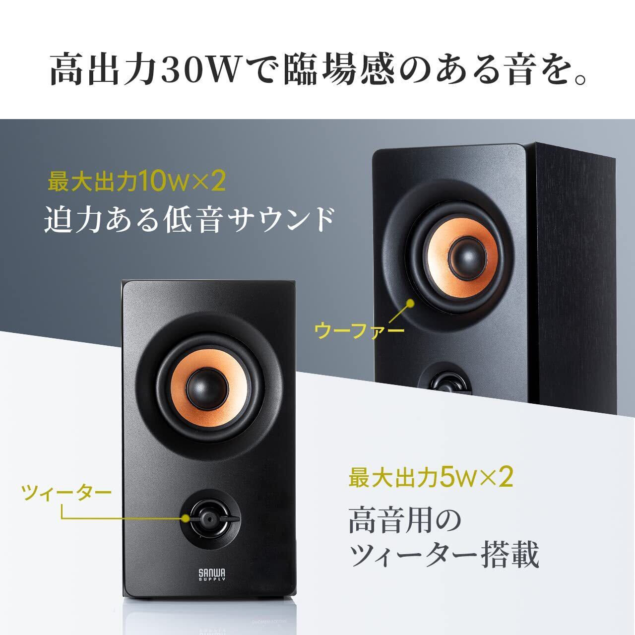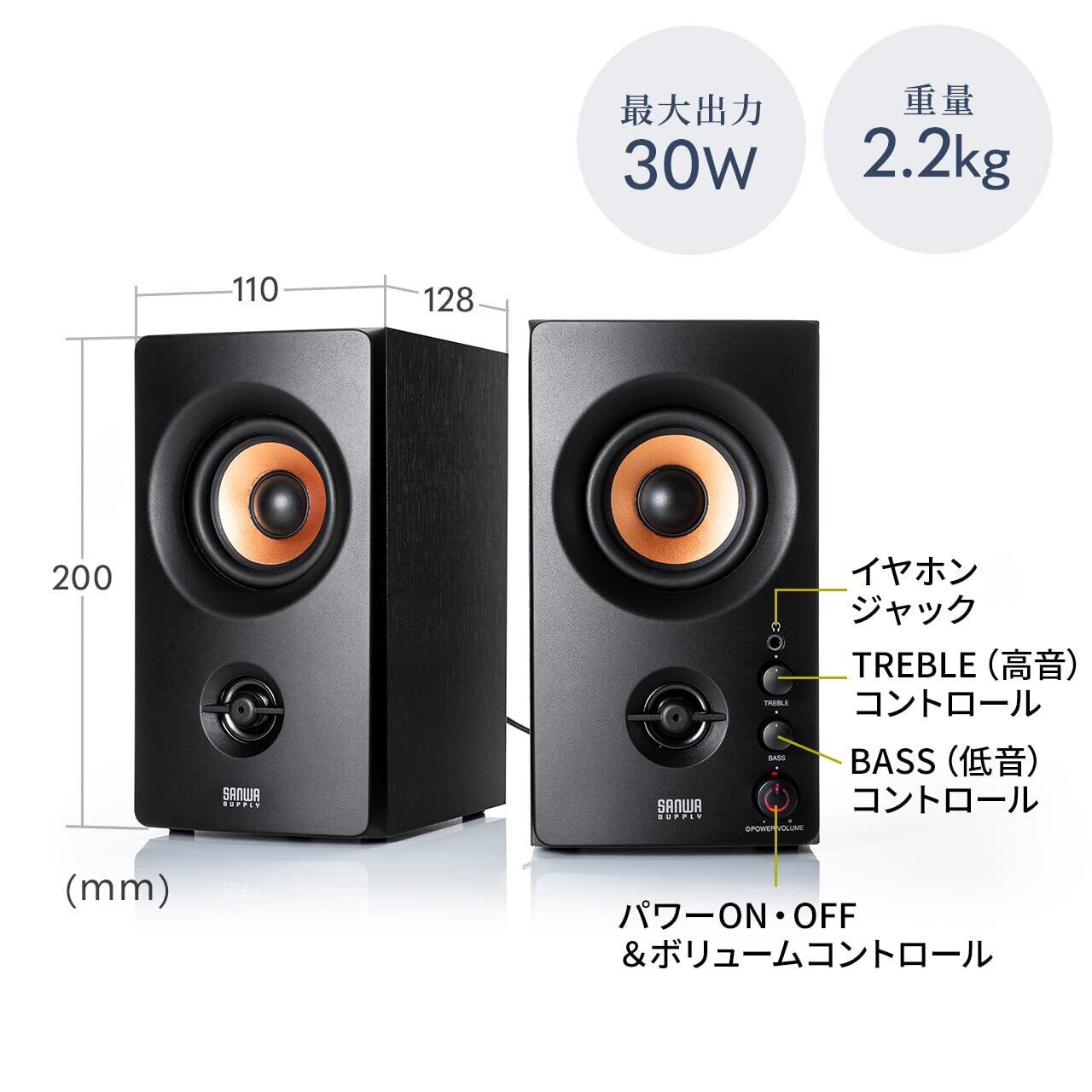 サンワダイレクト PCスピーカー 有線 3.5mm接続 30W 木製 テレビ パソコン モニター用 スピーカー ステレオ AC電源 400-SP107