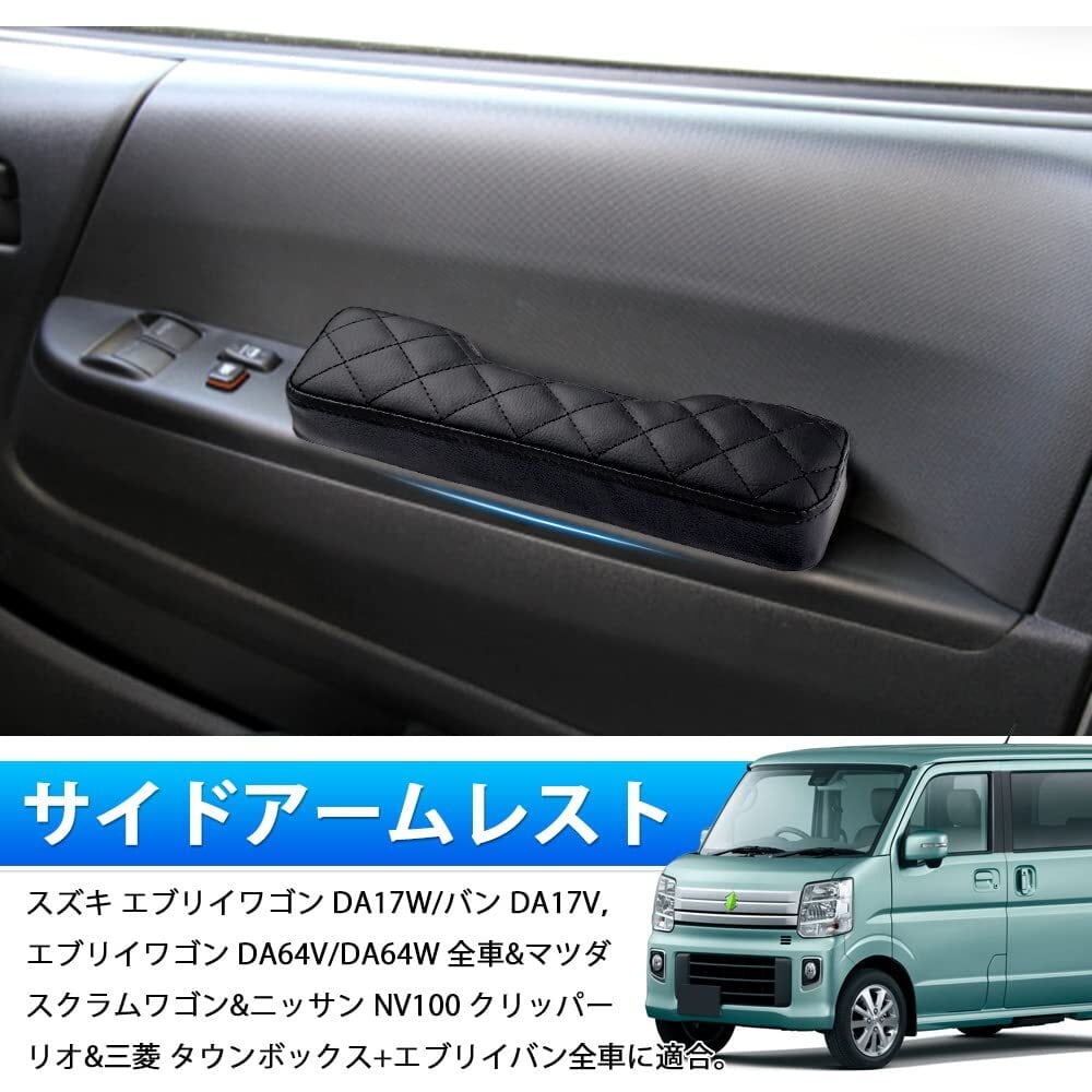 【在庫セール】LIMSTYLE スズキ エブリイワゴン DA17W バン DA17V サイドアームレスト ドアアームレスト 肘掛け 肘置き アームレスト エブリイバン da17v カスタムパーツ DA64V DA64W 全車 マツダ スクラム ワゴン ニッサン NV100クリッパーリオ 車種専用設計 快適 スタイリッシュ 装着簡単 インテリア パーツ 左右セット 2個入り (ブラック&菱形の縫製)