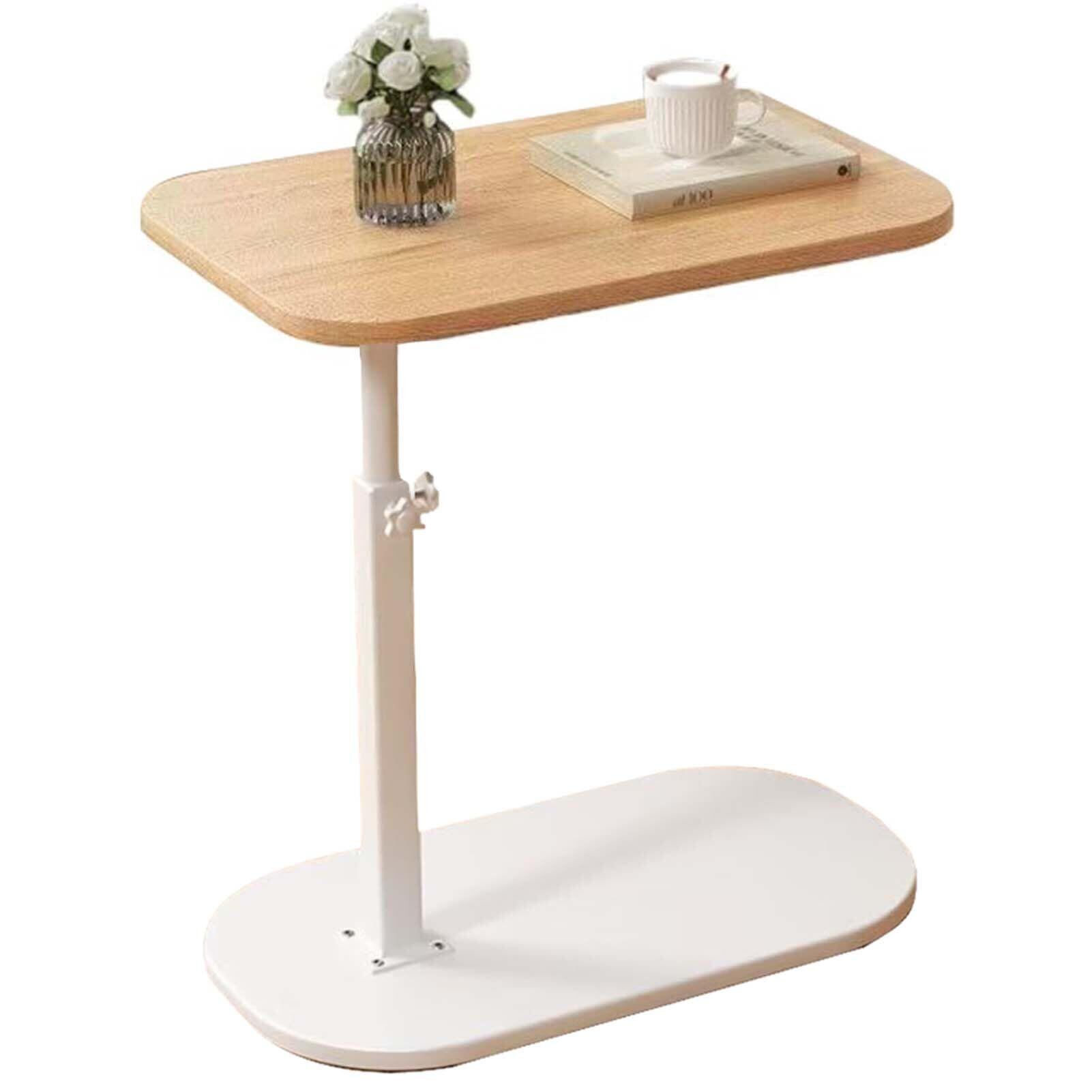 【特価セール】サイドテーブル 昇降式 ベッドサイドテーブル 回転 ソファーテーブル 介護テーブル 高さ調整 耐水 高温に強い 安定 耐荷重がいい 耐久性 小型 省スペース C字型 組立簡単 小型家具 家用 (原木色+ホワイト, 40*30*45-80CM)