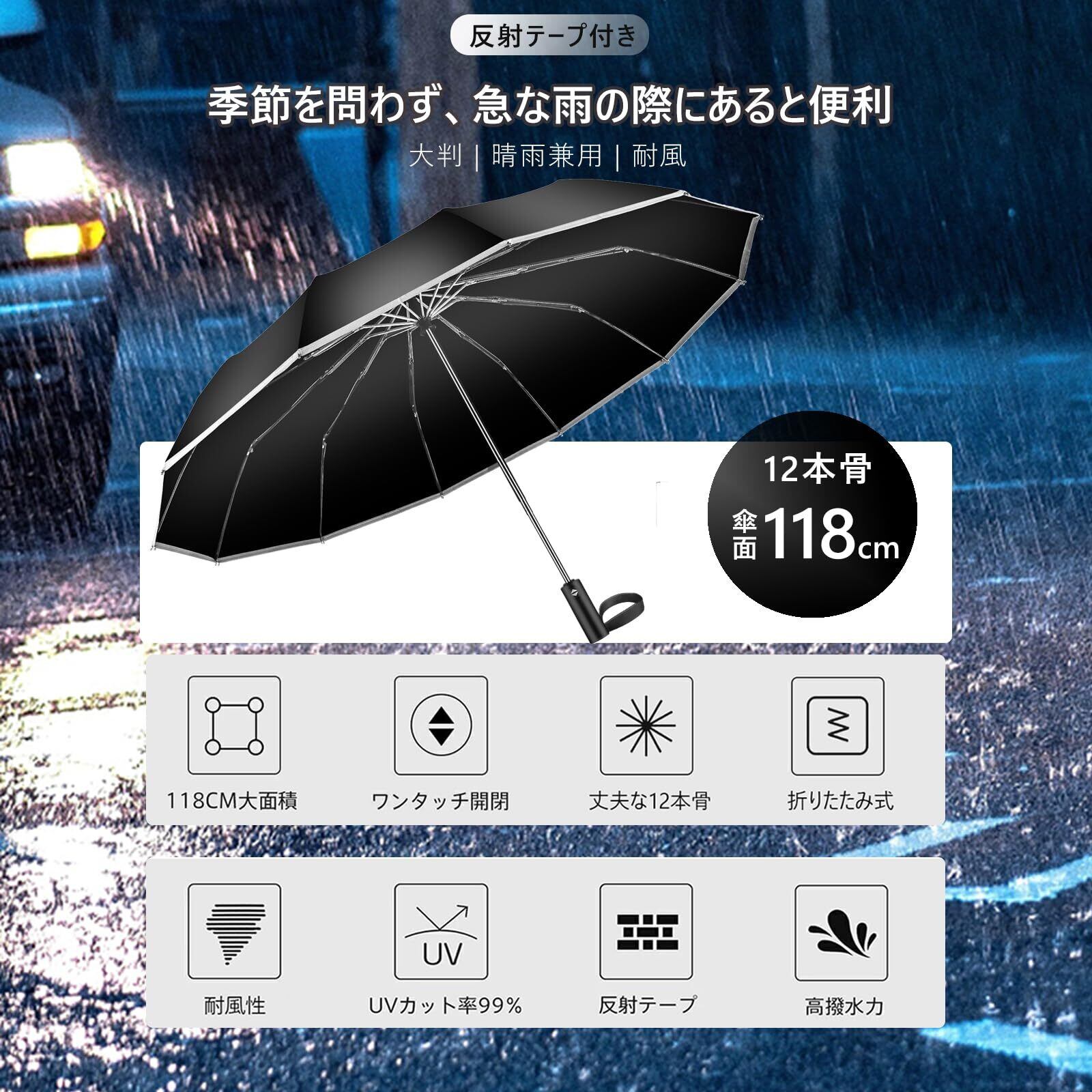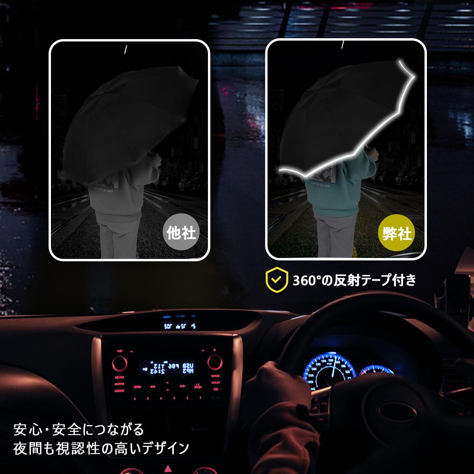 【新着商品】折りたたみ傘 おりたたみ傘 折り畳み傘 メンズ - 【 丈夫な12本骨・反射テープ付き】ワンタッチ 自動開閉 晴雨兼用 大きい 無地 耐風 撥水 収納ポーチ付き MRTLLOA