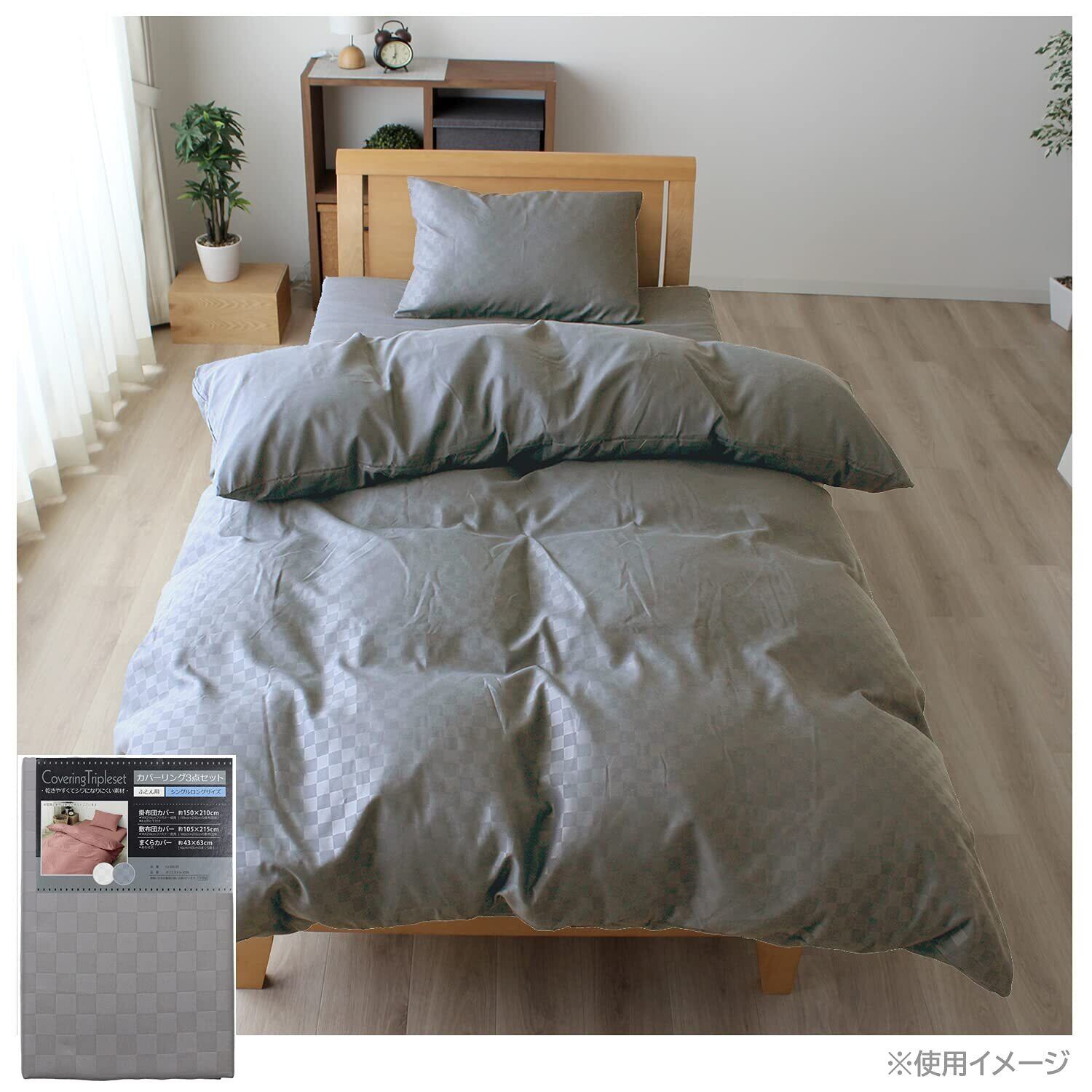 【新着商品】メリーナイト 布団カバー シングル3点セット 市松柄 ダークグレー 敷布団用 (掛け布団カバー 敷き布団カバー 枕カバー) 洗い替え 模様替え ゲスト用 速乾 シワになりにくい L3-300-03