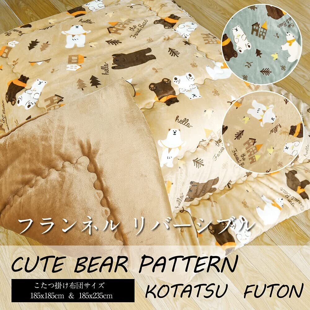 【新着商品】JEMA ジェマ こたつ布団 こたつ厚掛け布団 掛け布団単品 リバーシブル 両面使える フランネル 発熱綿使用 保温性 丸洗いOK 静電気防止 毛抜けない 熊 グリーン 185x185cm