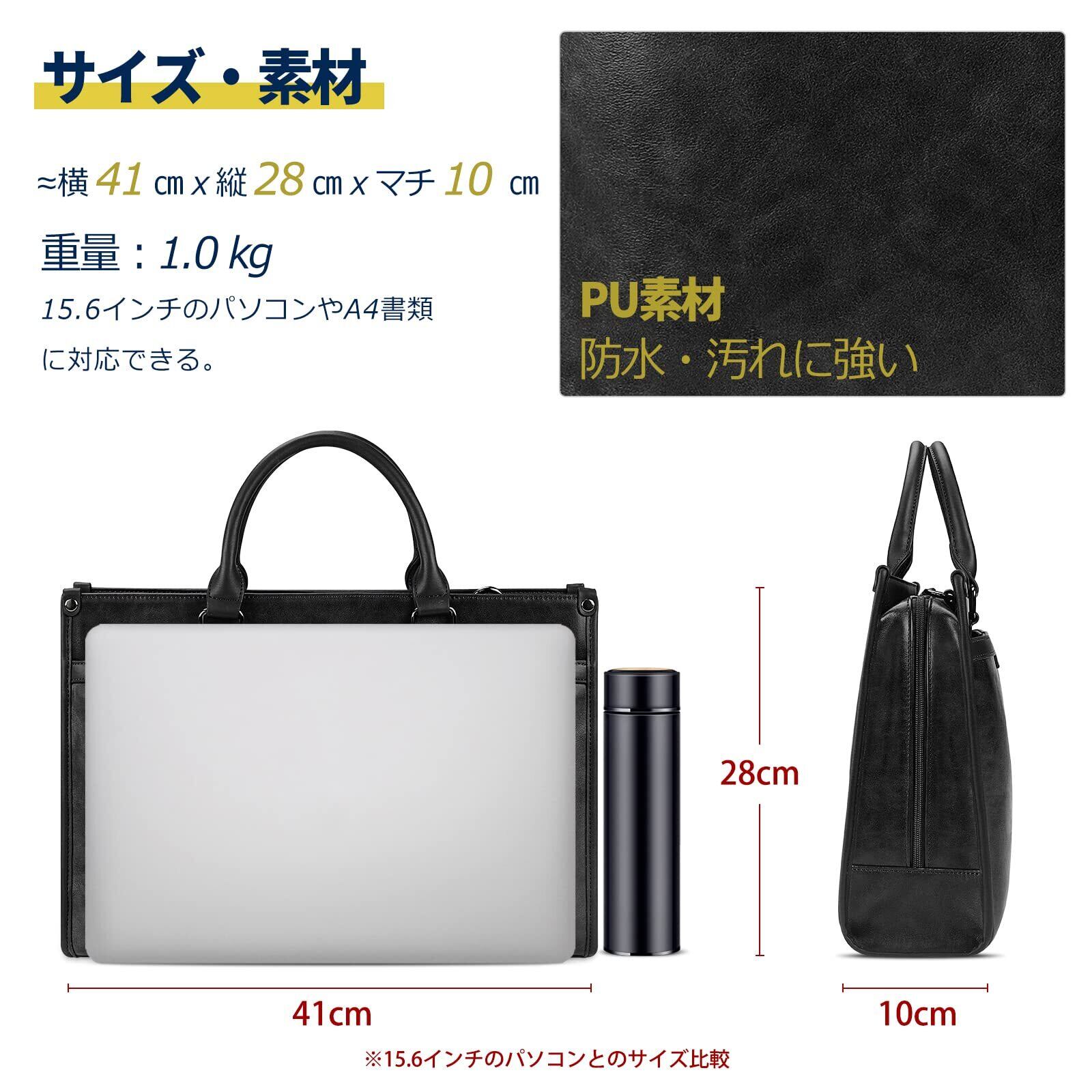 【特価商品】[KTMOUW] ビジネスバッグ メンズ ブリーフケース A4対応 撥水 自立 15.6インチPC対応 2WAY マルチポケット 大容量 就活バッグ リクルートバッグ 就活 通勤 ブラック ブラウン
