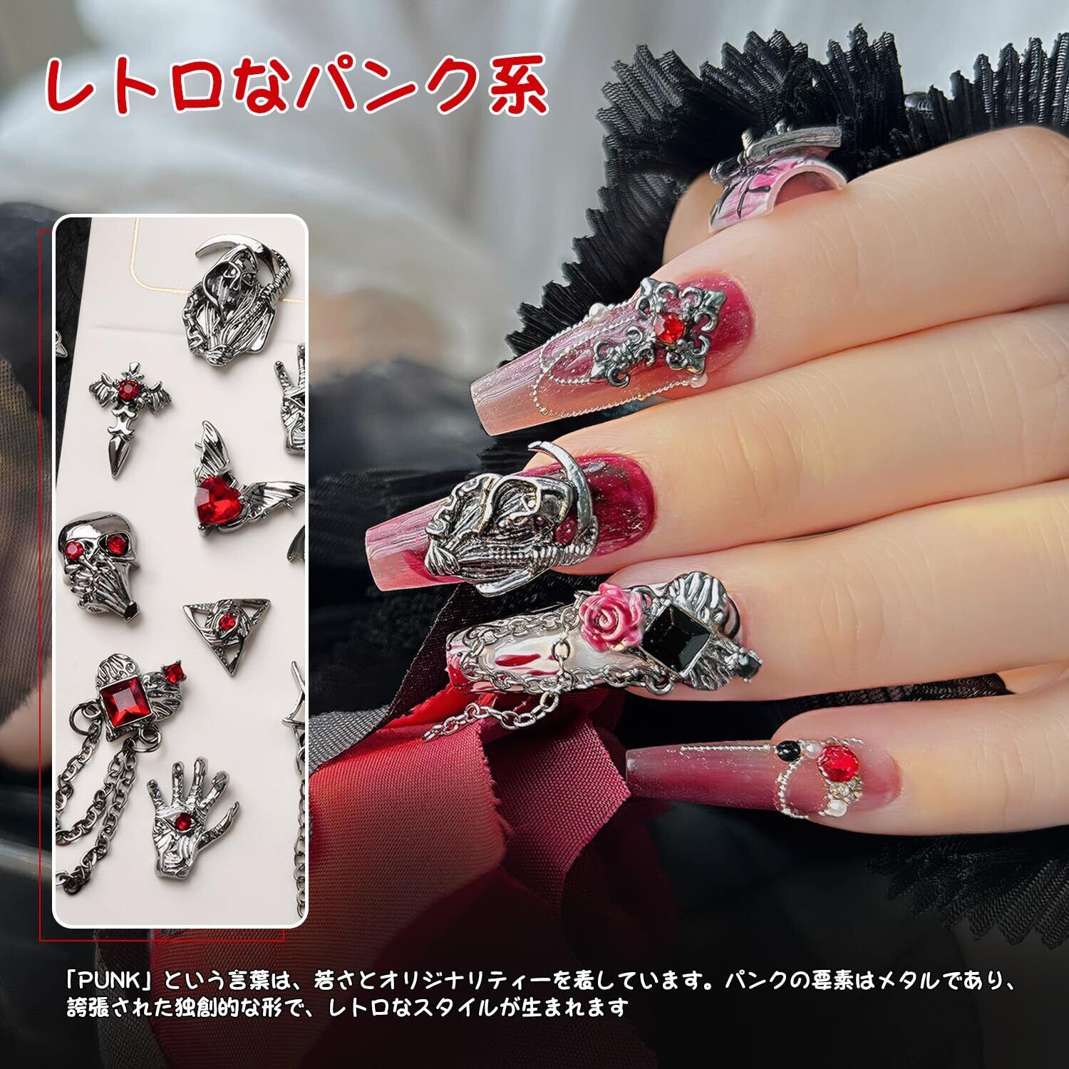 【幅広い用途】パンクやゴシック風も言うまでもなく、ハロウィンにとてもふさわしいです。日常的に他のスタイルに挑戦したい人にもおすすめです。ネイルパーツだけでなく、レジン、スマートフォンケースやアクセサリー、クラフト装飾などにも使用可能です