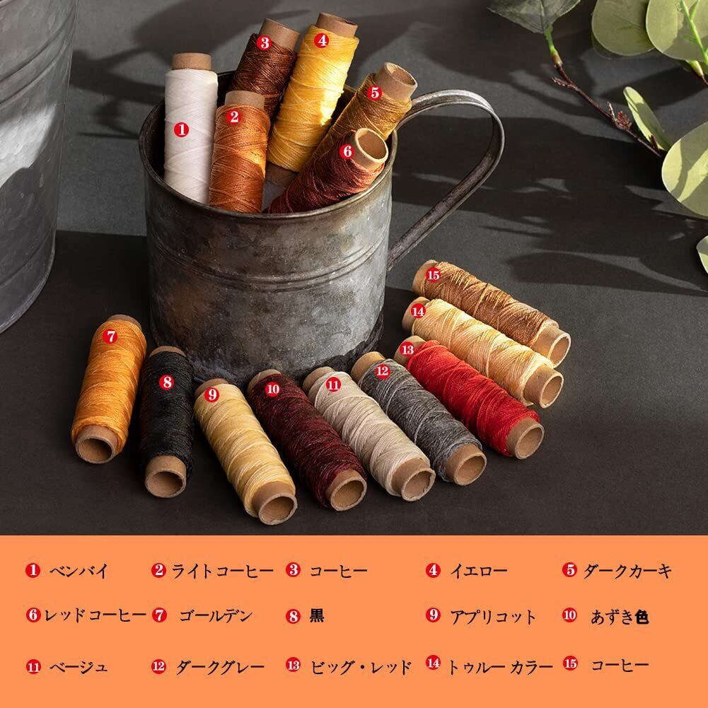 RMTIME ワックス糸 レザークラフトキット 革ワックス糸 セット 道具 ハンドメイド 64本 レザー DIY 手裁縫キット 裁縫針 指プロテクター 鉄則 はさみ 千枚通し 初心者 手芸 …