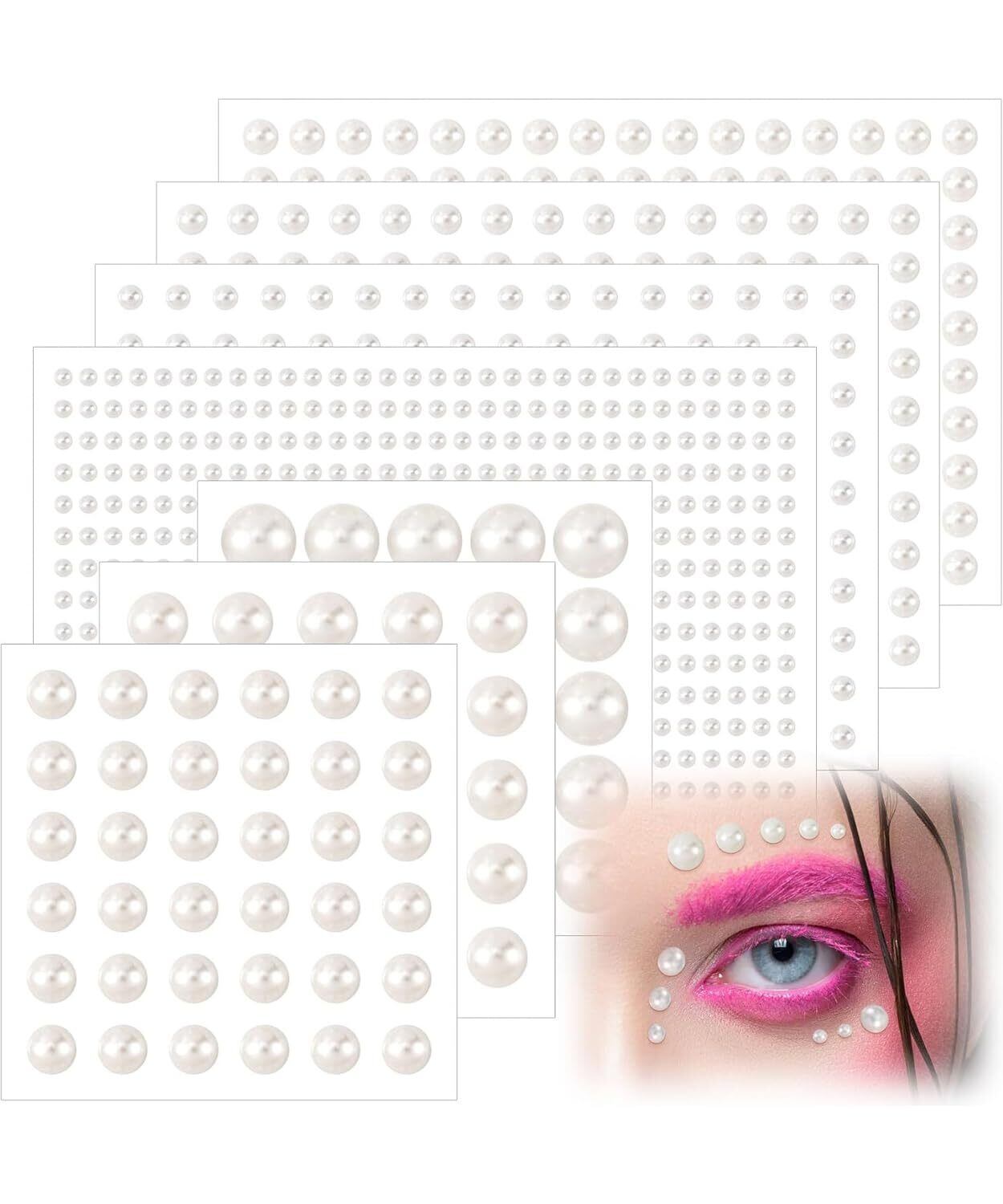 TerraShine パールシール 7枚セット パールビーズ ラインストーンステッカー フェイスステッカー アイメイク デコパーツ ネイルアートパーツ 真珠 顔面デコ 携帯電話装飾 自己粘着性 化粧用 DIY用品 手芸 (3mm /4mm/5mm/6mm/8mm/10mm/12mm)