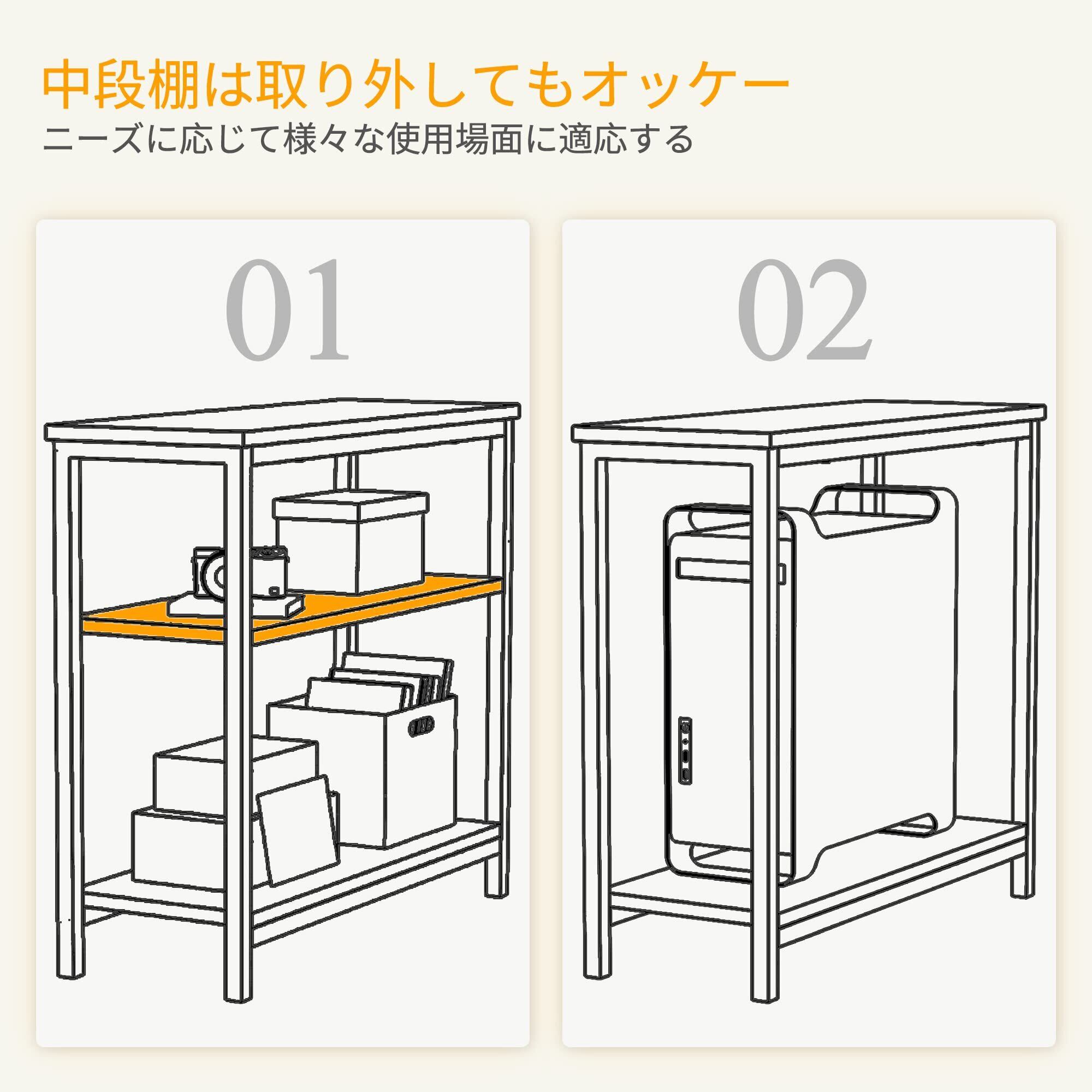 【ラック付き】足元にラック付いており、収納力は満載です!中段棚は取り外すこともできますので、ニーズに応じて様々な使用場面に適応します。