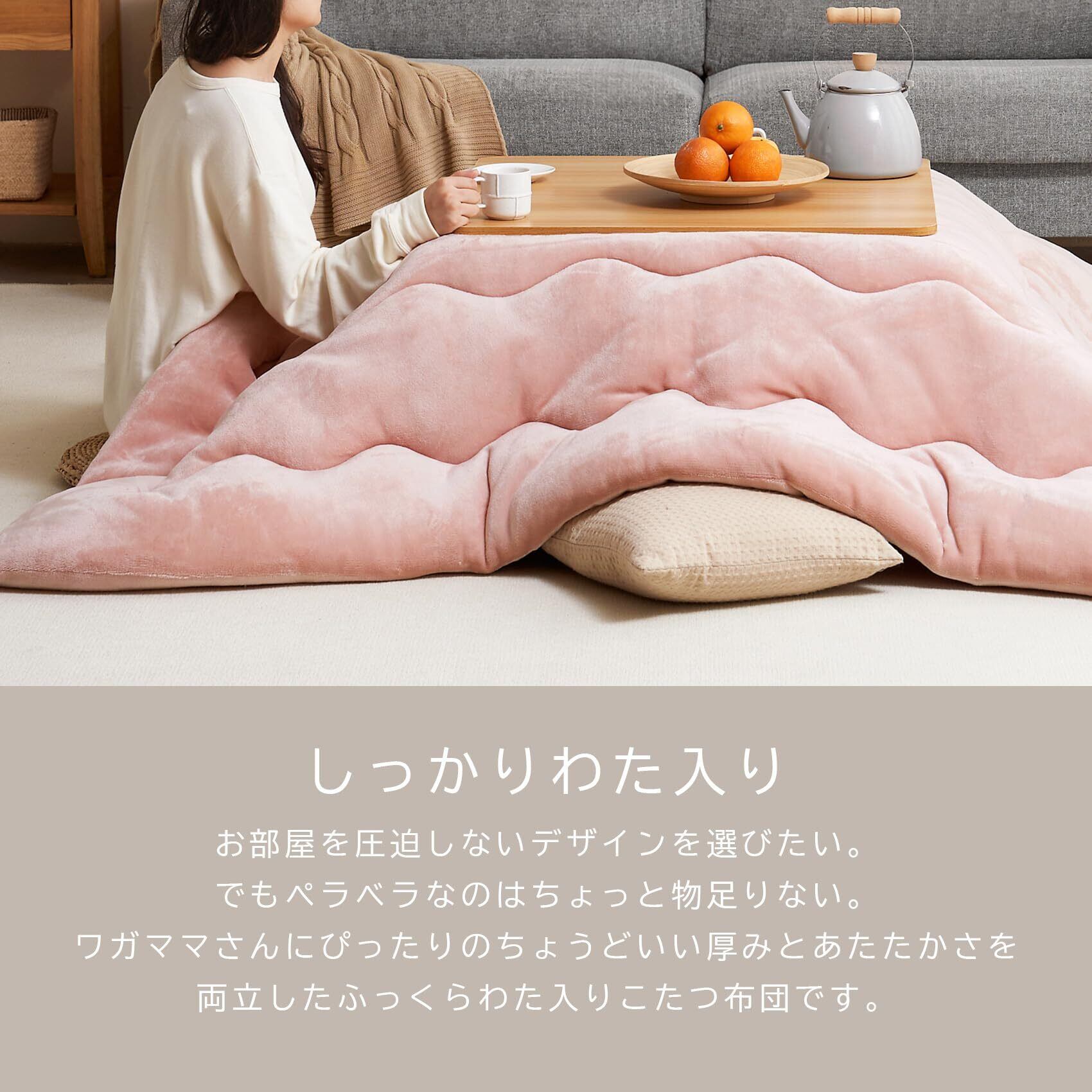 【汎用性】おうち時間がもっと好きになります。家族でわいわい囲んだり、一人でまったりくつろいだり。オールシーズン使える布団は、鍋パーティーをしたり、勉強やパソコン作業も快適な広さです。お部屋のや心にずっと過ごしたい居心地を。