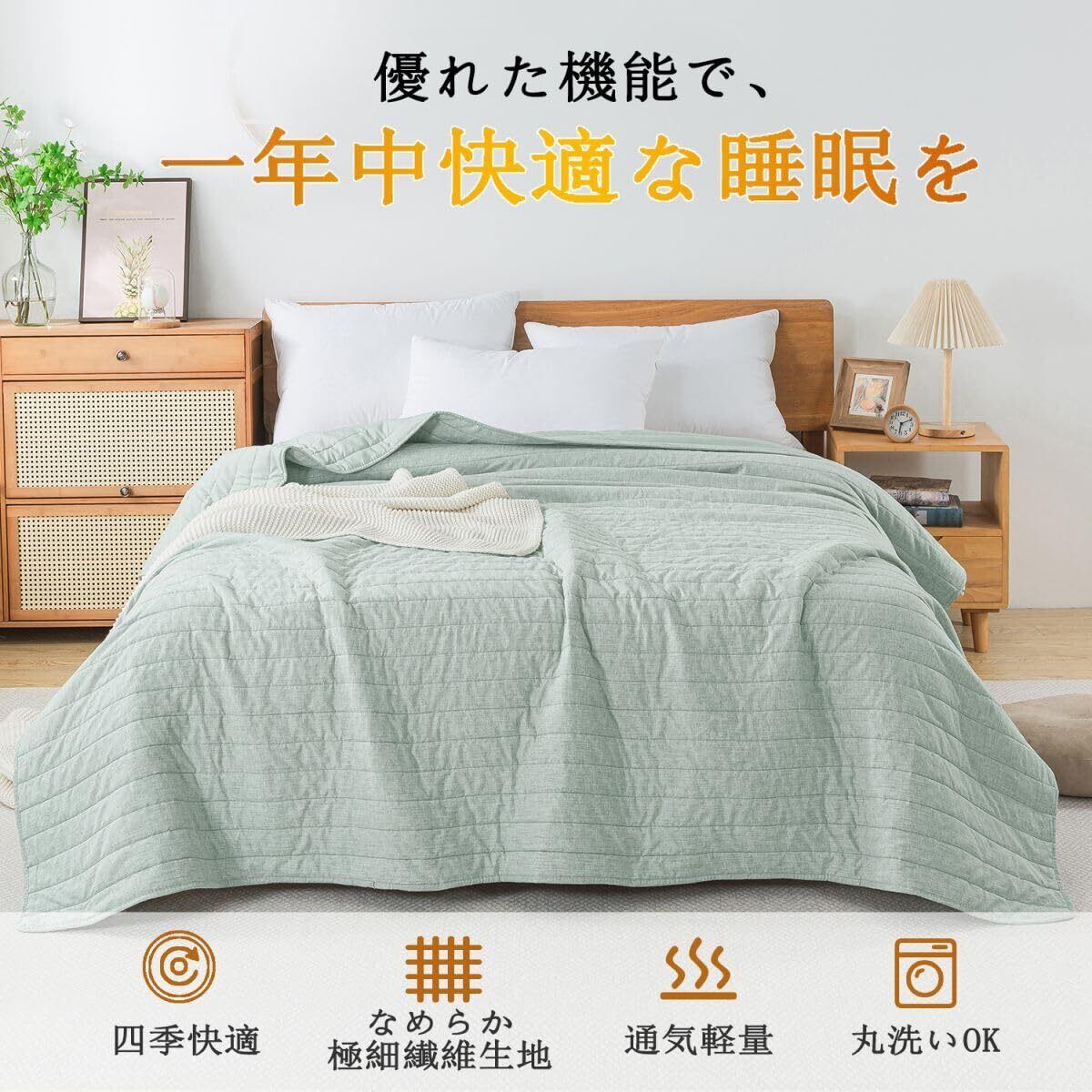 キルトケット オールシーズン 洗える 掛け布団 軽量 防ダニ加工 吸水速乾 オールシーズンほこりが出にくい 身体にやさしくフィット (グリーン, セミダブル・160X200cm)