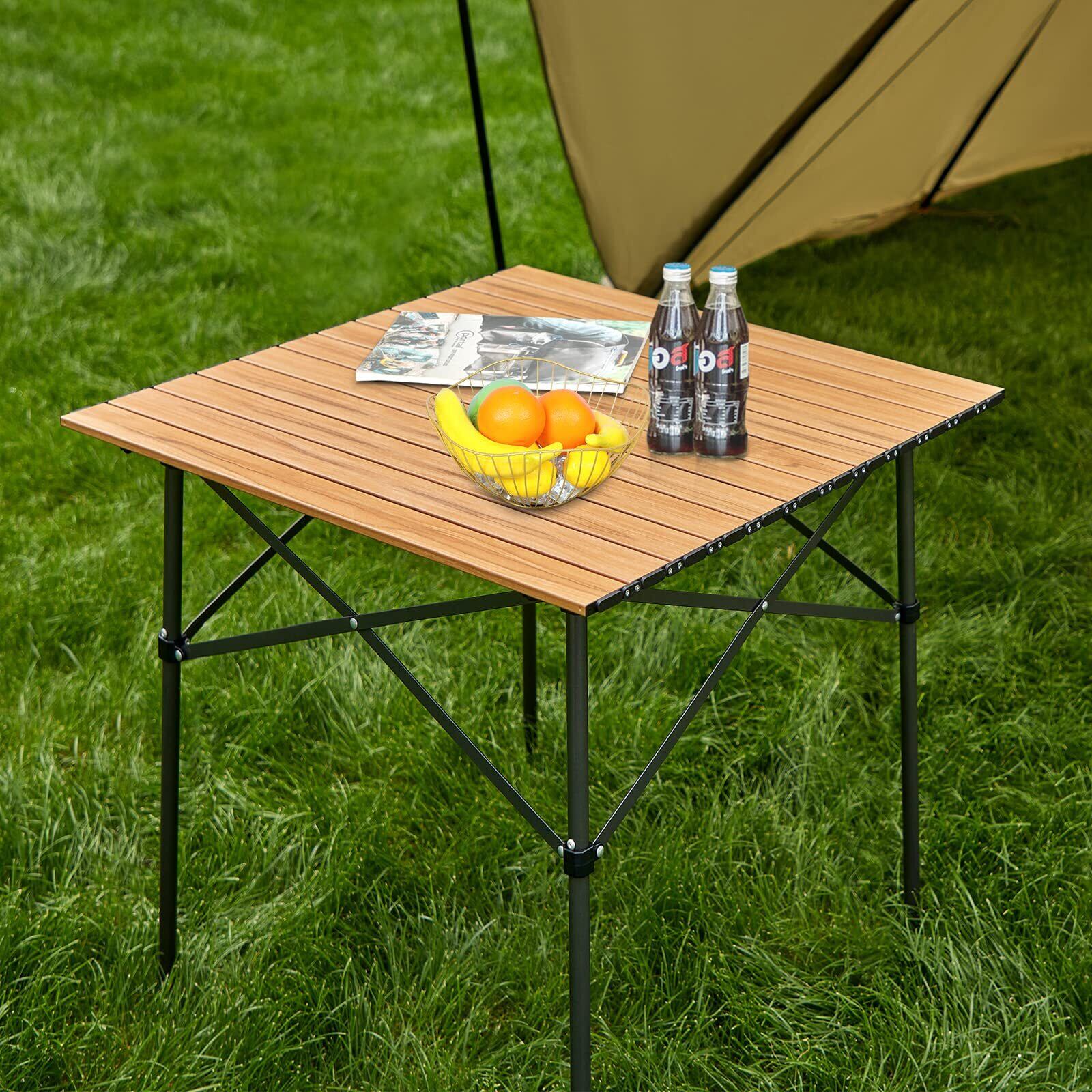 TIMBER RIDGE アウトドアテーブル 折りたたみ 70*70*70cm テレワーク 重量4.2kg 耐荷重45kg アルミ ロールテーブル キャンプ bbq 収納袋付き コンパクト 自宅勤務 木色