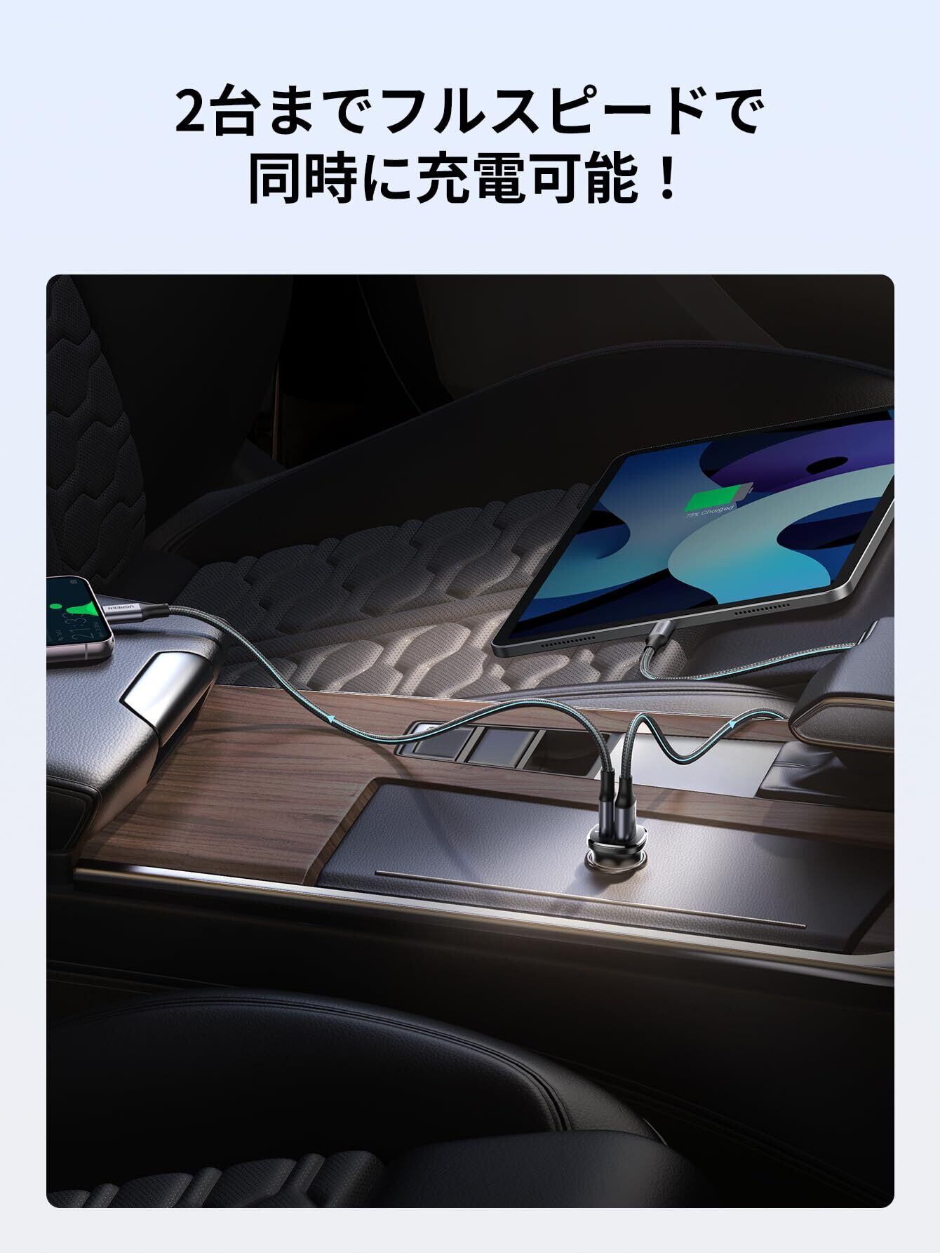【PD30W+SCP22.5W圧倒的な充電スピード】本製品usb-c シガーソケットは高速充電が可能なSCP急速USB A及びPD3.0のType Cポートを備え、最大30Wの高出力充電が可能。スマートフォン、タブレット端末などの機器を2台同時に充電することができます。※2台同時に充電する場合は、総合出力が下がることをご了承ください。