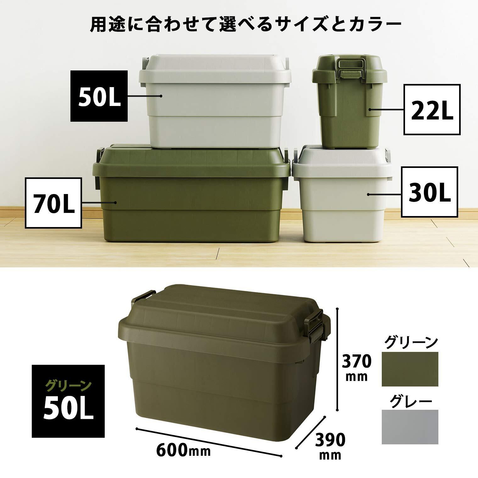 リス(RISU) 収納ボックス トランクカーゴ 50L グリーン 日本製 TC-50 コンテナ ボックス 屋外収納 キャンプ 防水 GHON071