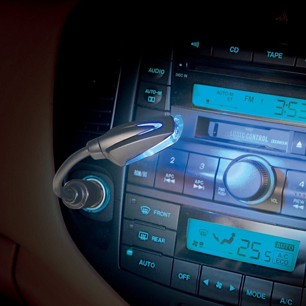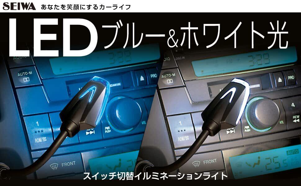 シガーライター電源を利用し、カーオーディオや灰皿等を照らすイルミネーションライト。ブルーLEDとホワイトLEDの光をライト部のスイッチで切り替え可能。フレキシブルアームでライトの角度を自由に調節できる。ライト部上面にはイルミネーション色が確認できるウインドウ付き。球切れや消費電力の少ない高輝度LEDを採用。