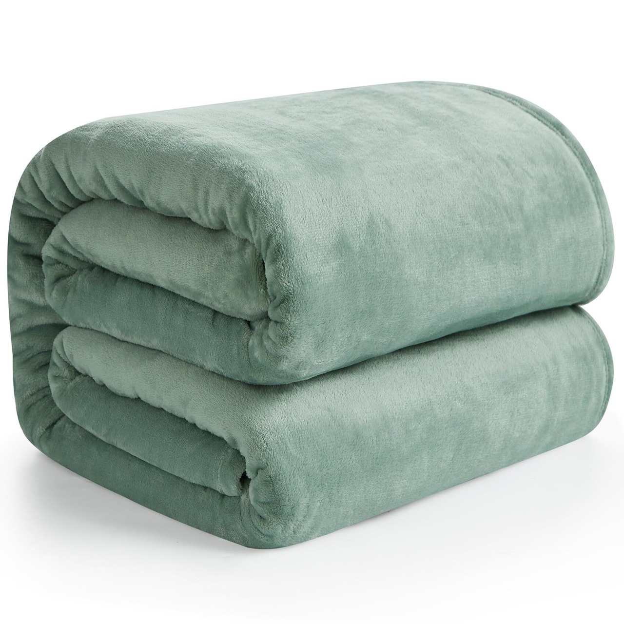 Hansleep 毛布 シングル 夏用 ブランケット 140x200cm マイクロファイバー 柔らかく肌触り フランネル 洗える 静電防止 四季適用 (140x200,カルダモングリーン)