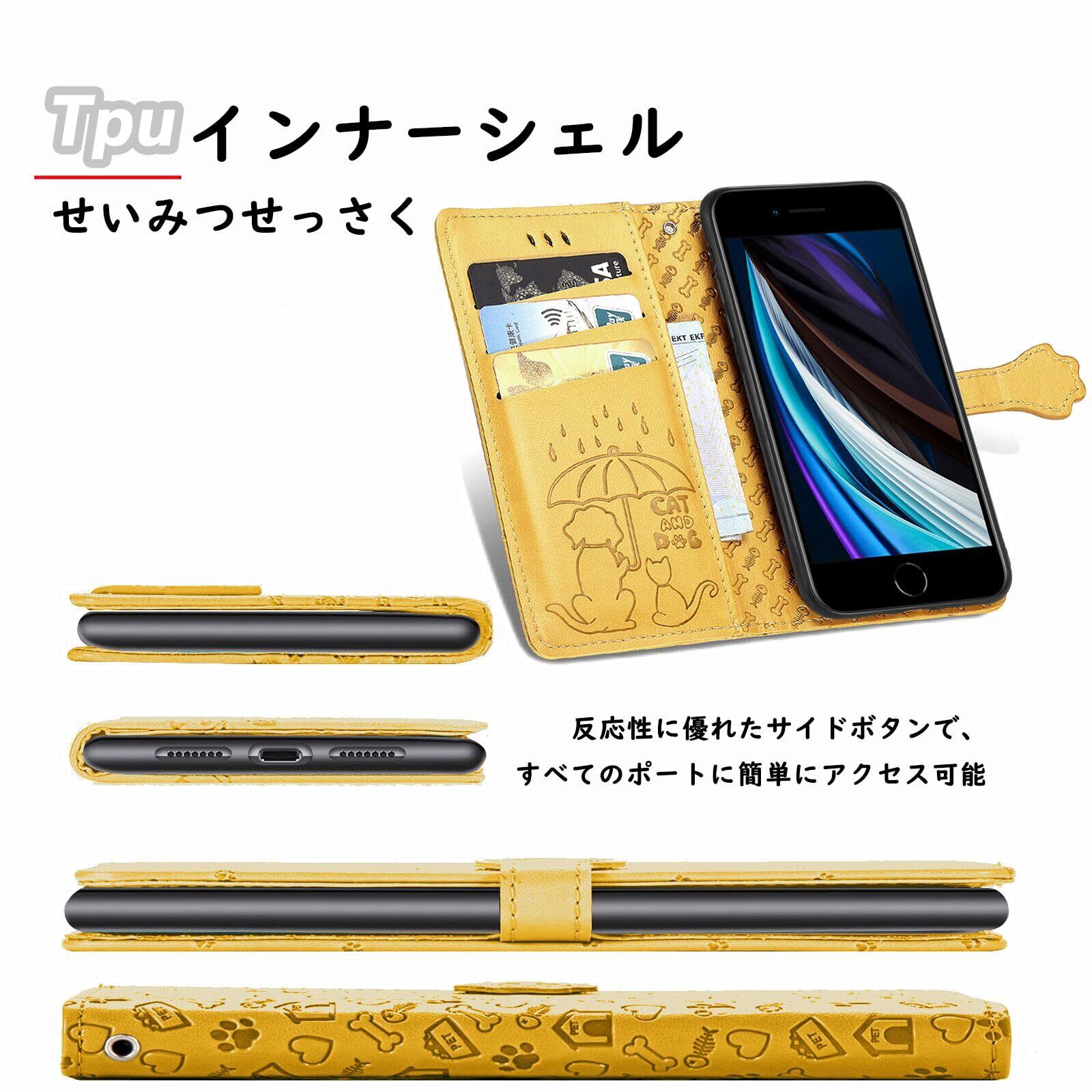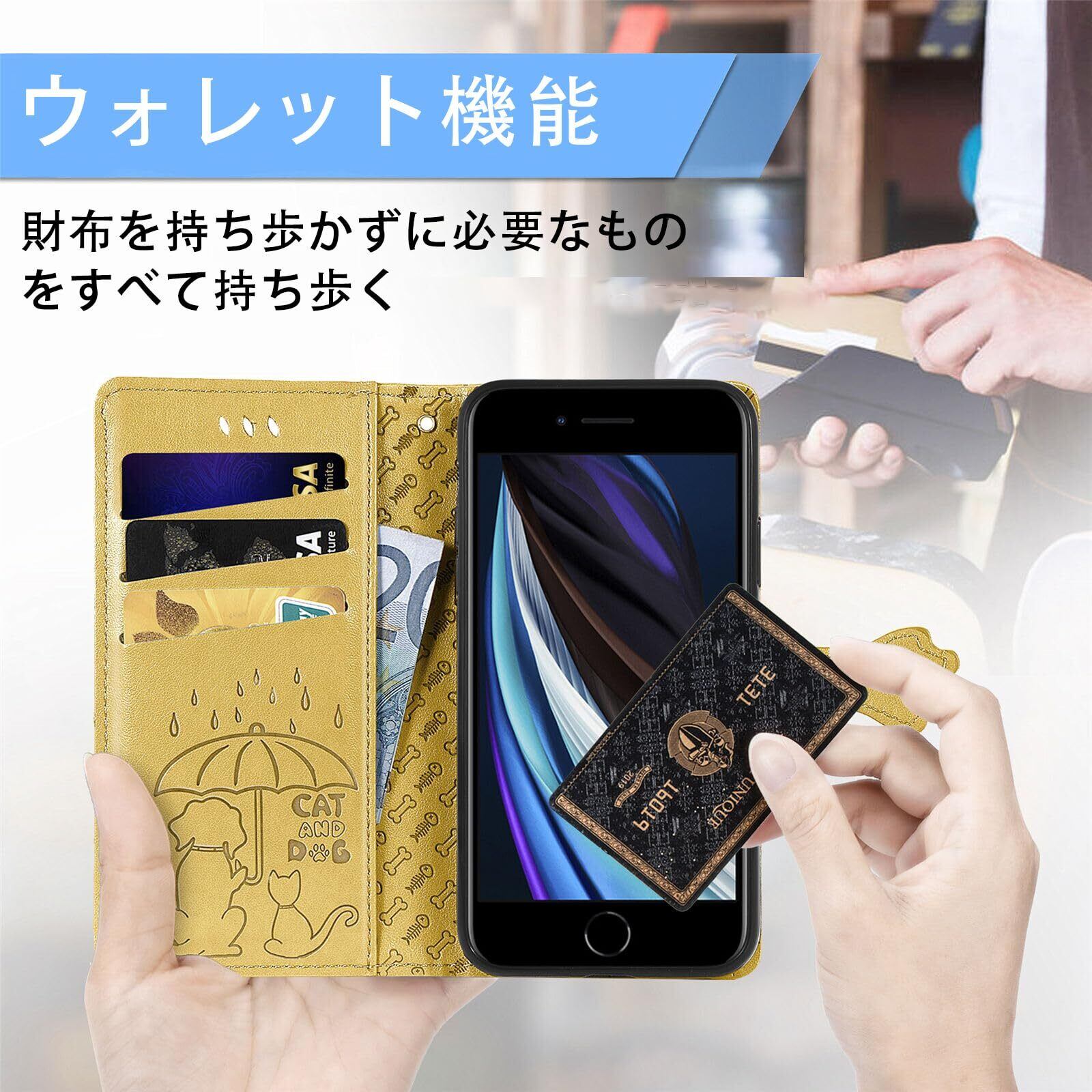 iPhone SE ケース 手帳型 iPhone SE 第3世代 第2世代 iphone8 iphone7 耐衝撃 手帳型 スマホケース携帯カバー レザー 軽量 薄型 耐摩擦 全面保護 マグネット式 カード収納 スタンド機能 se 4.7インチ対応 EUMADOVE (ゴールド, iPhone SE3/SE2/7/8)