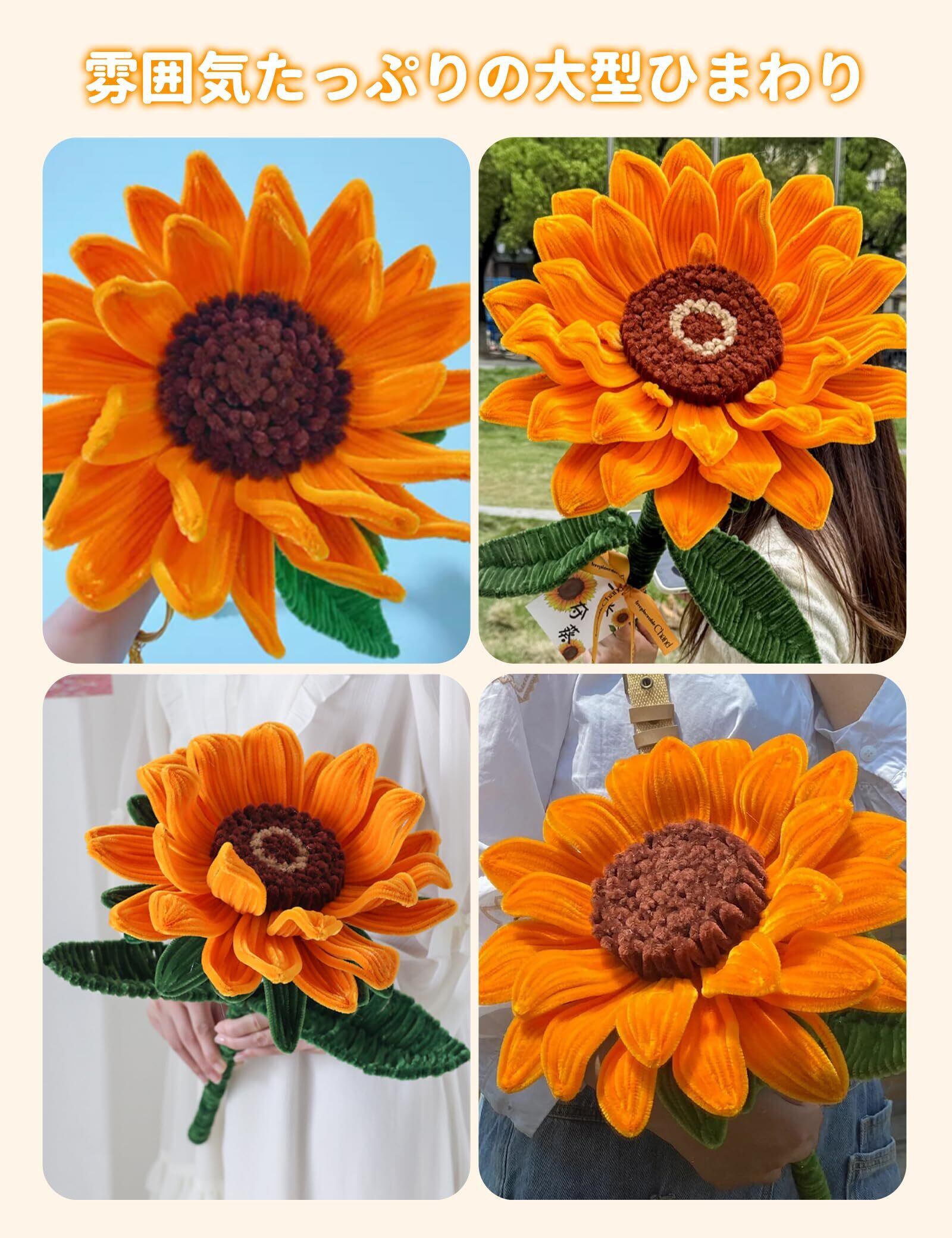 【ひまわり造花の手作りキット】造花セットはオレンジ、グリーン、コーヒー色があり、きれいなひまわりを作ることができます。また、独特の手芸素材なのでふんわりとした風合いがあるだけでなく、腐りもしません。永生花は飾りにも、プレゼントにも適しています