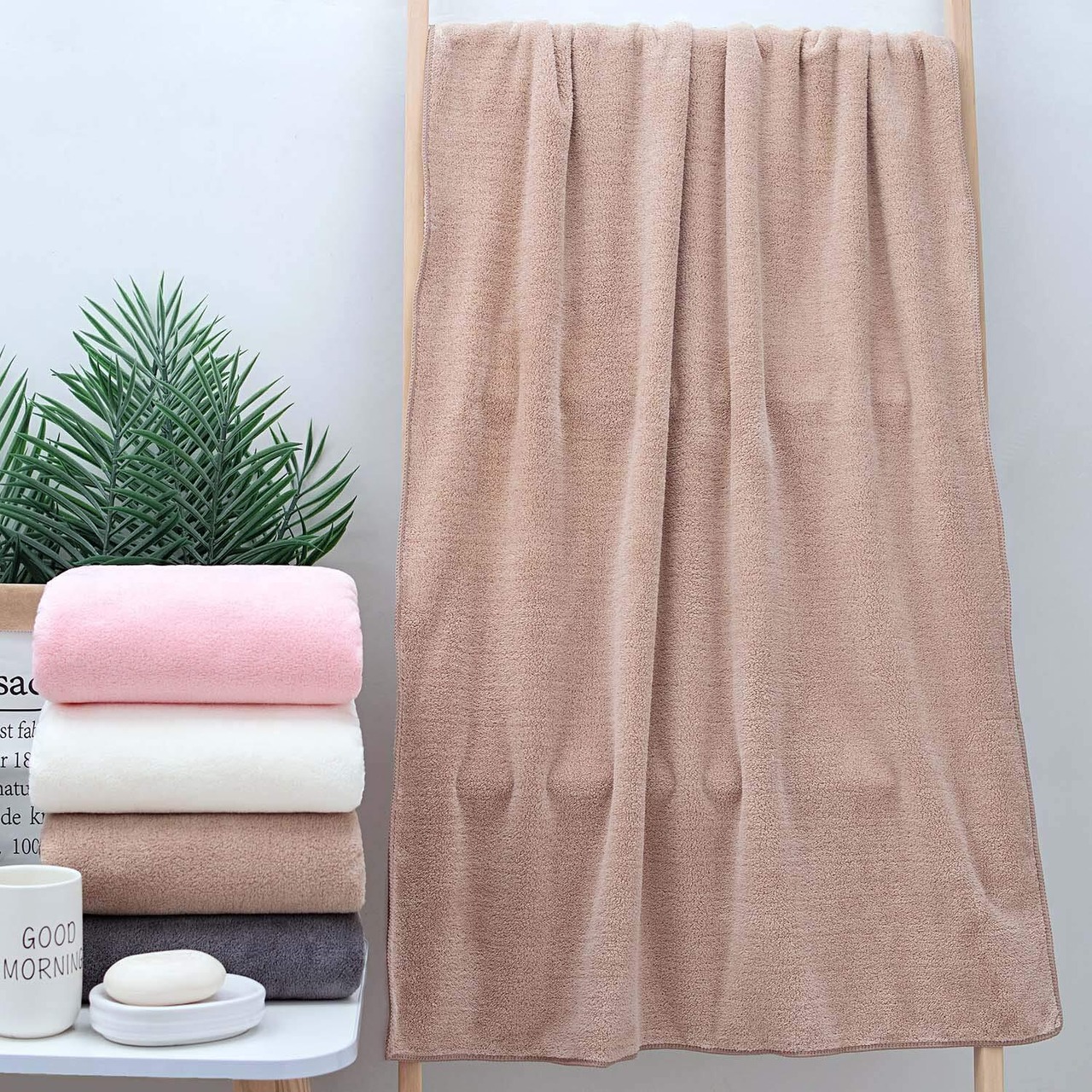 【材質】:ポリエステル85%、ポリアミド15%高級マイクロファイバー素材を採用 - このタオルは毛髪の1/100超微細繊維(マイクロファイバー)で作られたバスタオルです、触り心地最高、優しくてやわ らかい肌触りです、やさし い仕上げに蛍光染料は使用 しておりません。品質:このバスタオルが色褪せない、毛羽落ちしないことを保証します。