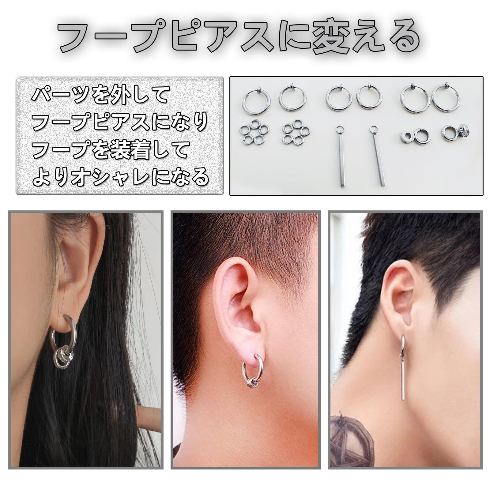 【2022最新】6ペア イヤリング メンズ イヤーカフ フェイクピアス フープイヤリング ノンホール ピアス 人気 シルバー ブラック レディース 男性 両耳用 金属アレルギー対応 収納ポーチ付き ユニセックス 韓国 穴なし 両耳セット
