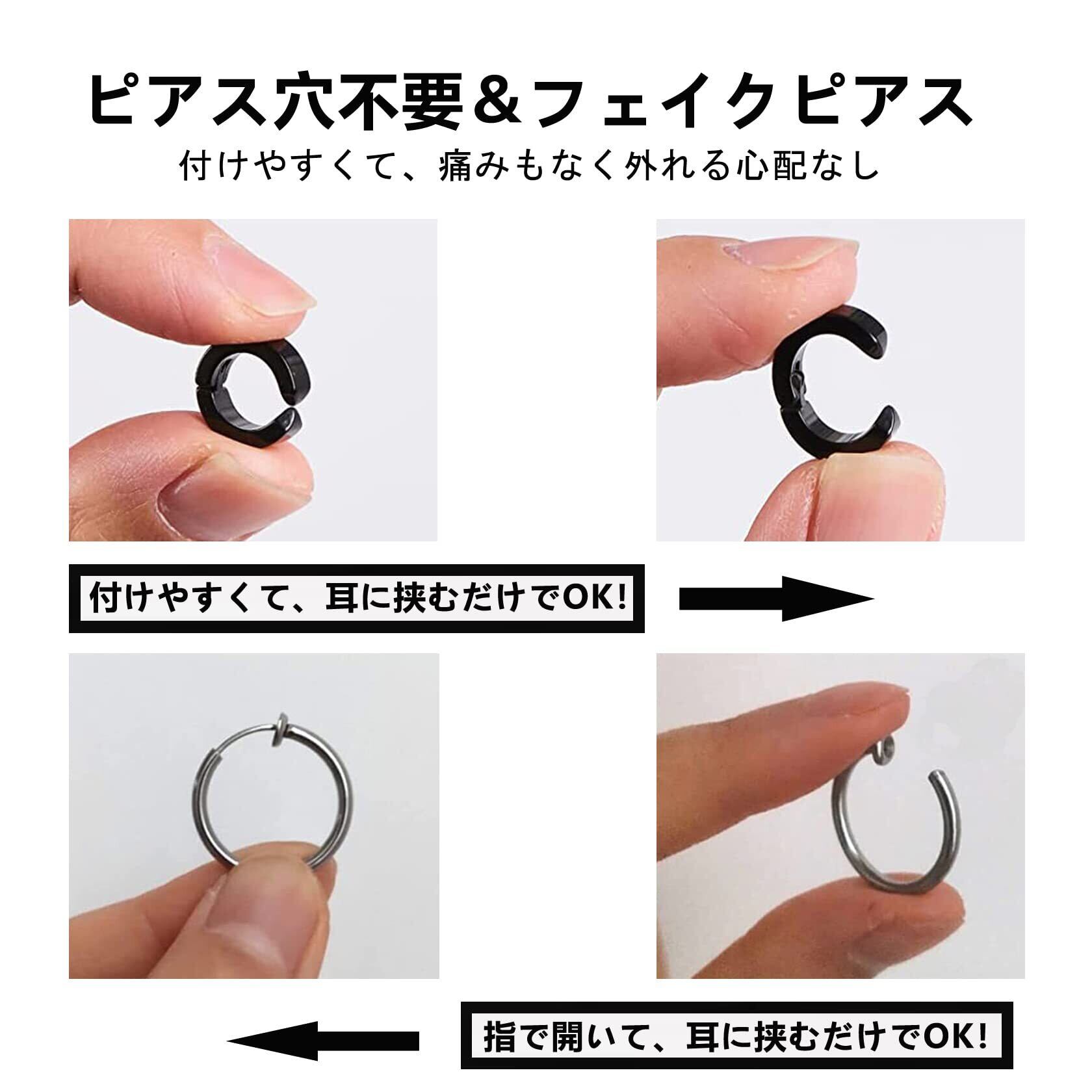 【ばれないフェイクピアス】普通のイヤリングと変わらない見た目で周りから疑われることなくフェイクピアスを存分に楽しんで頂けます。フェイクピアスは穴を開けないピアスで穴なしピアス、ノンホールピアス、偽ピアスなどと呼ばれています。こちらのフェイクピアスは耳の厚さに合わせて挟む強さを自分自身で調節ができるタイプなので好みの強さで調節ができ、留め具もないので前から見ても後ろから見てもフープピアスを装着しているようにみえます。