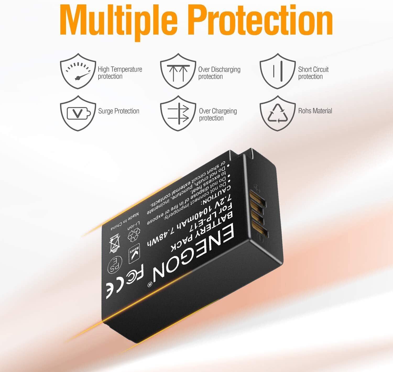 ENEGON LP-E17 互換 バッテリー2個 マイクロUSBデュアルチャージャー付き Canon EOS R100 R50 RP R10 R8、Rebel T8i、T7i、T6i、T6s、SL2、SL3、EOS M3、M5、M6、EOS 200D、77D、750D、760D、800D、8000D 9000Dデジタル一眼レフカメラ用