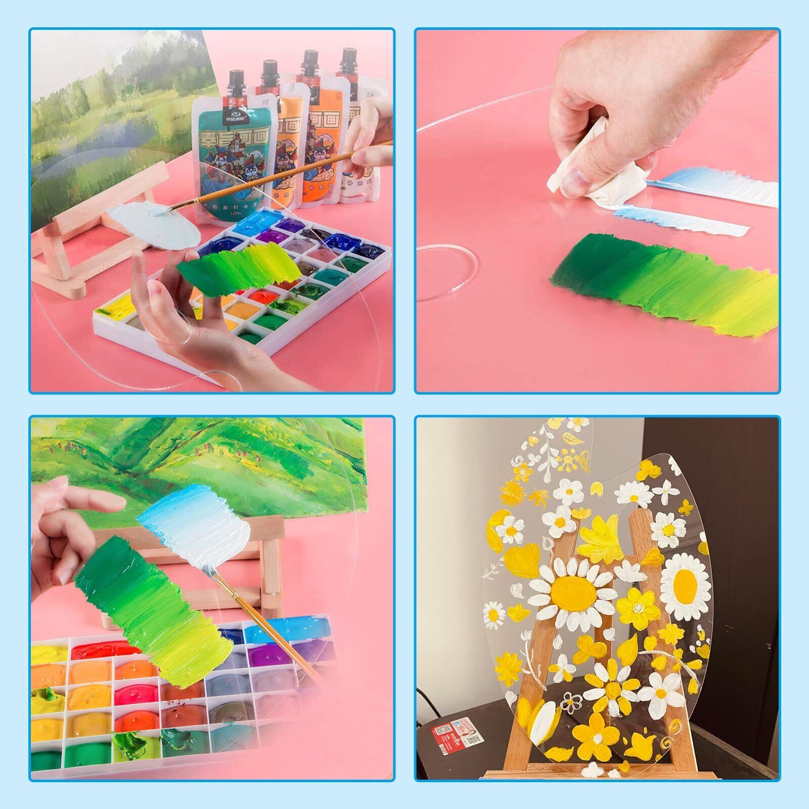 【高品質】水彩パレットは耐久性のあるアクリル素材でできており、ガラスよりも優れており、再利用可能で、頑丈で、壊れにくいものです。当社のパレットは、頑丈で耐久性のある構造、壊れにくい、表面が滑らか、掃除がしやすいと いう利点 があります。