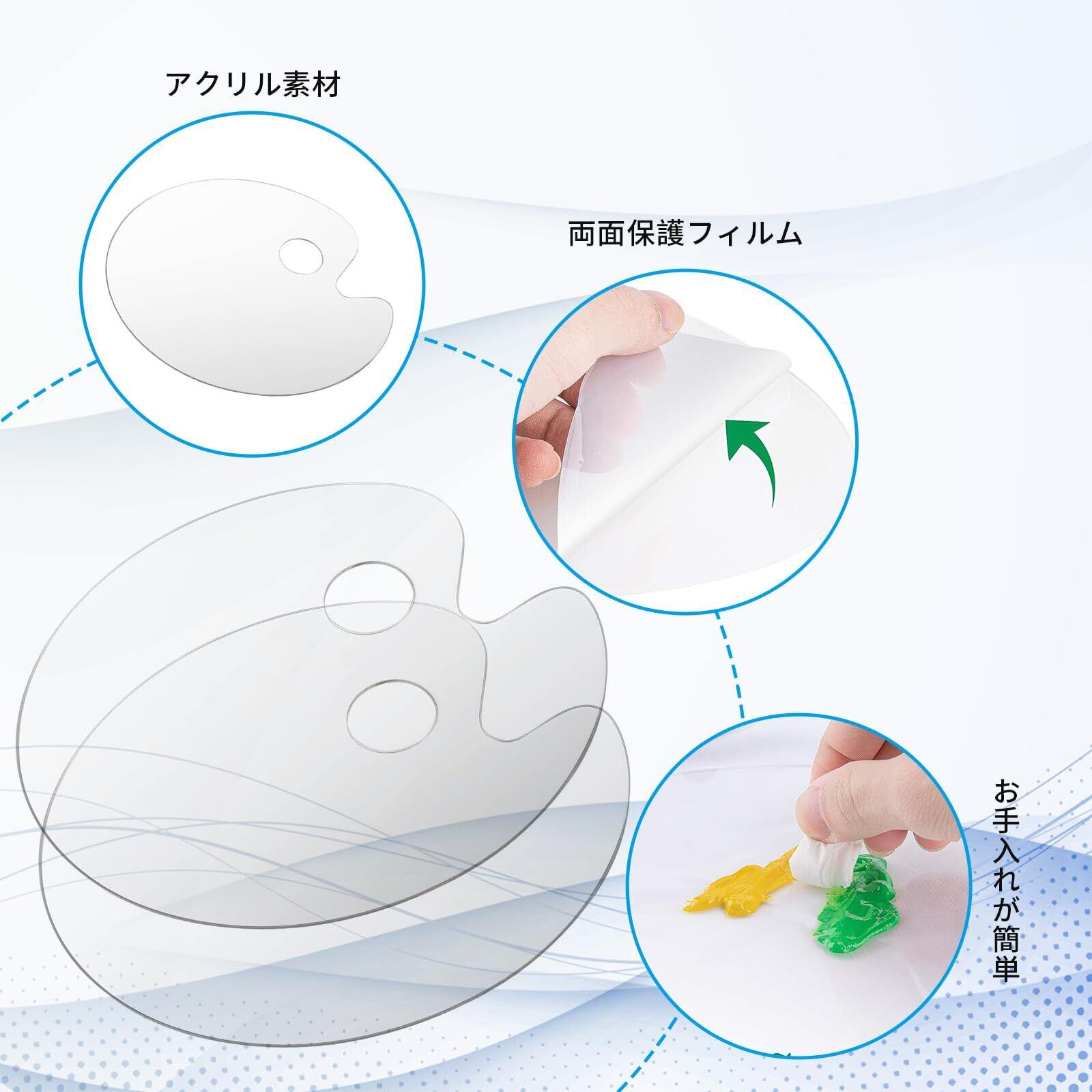 【お手入れ簡単】この水彩パレットを使用する前に、両側の保護フィルムをそっと取り外してください。また、透明なパレットで、色を選ぶときに、絵画と直接に対比することができて、色も簡単に決められます。そうすると、透明なパレ ットが得られます。