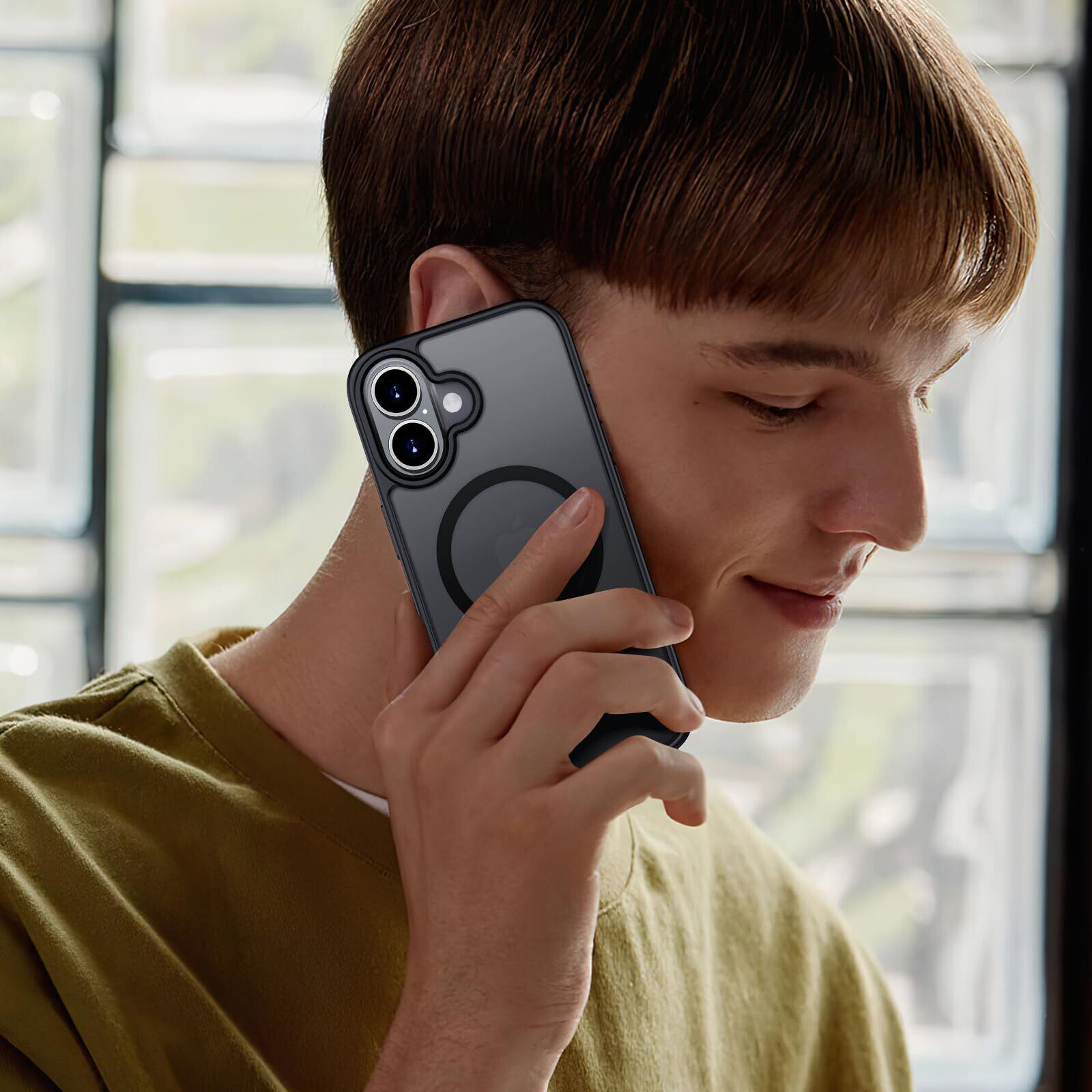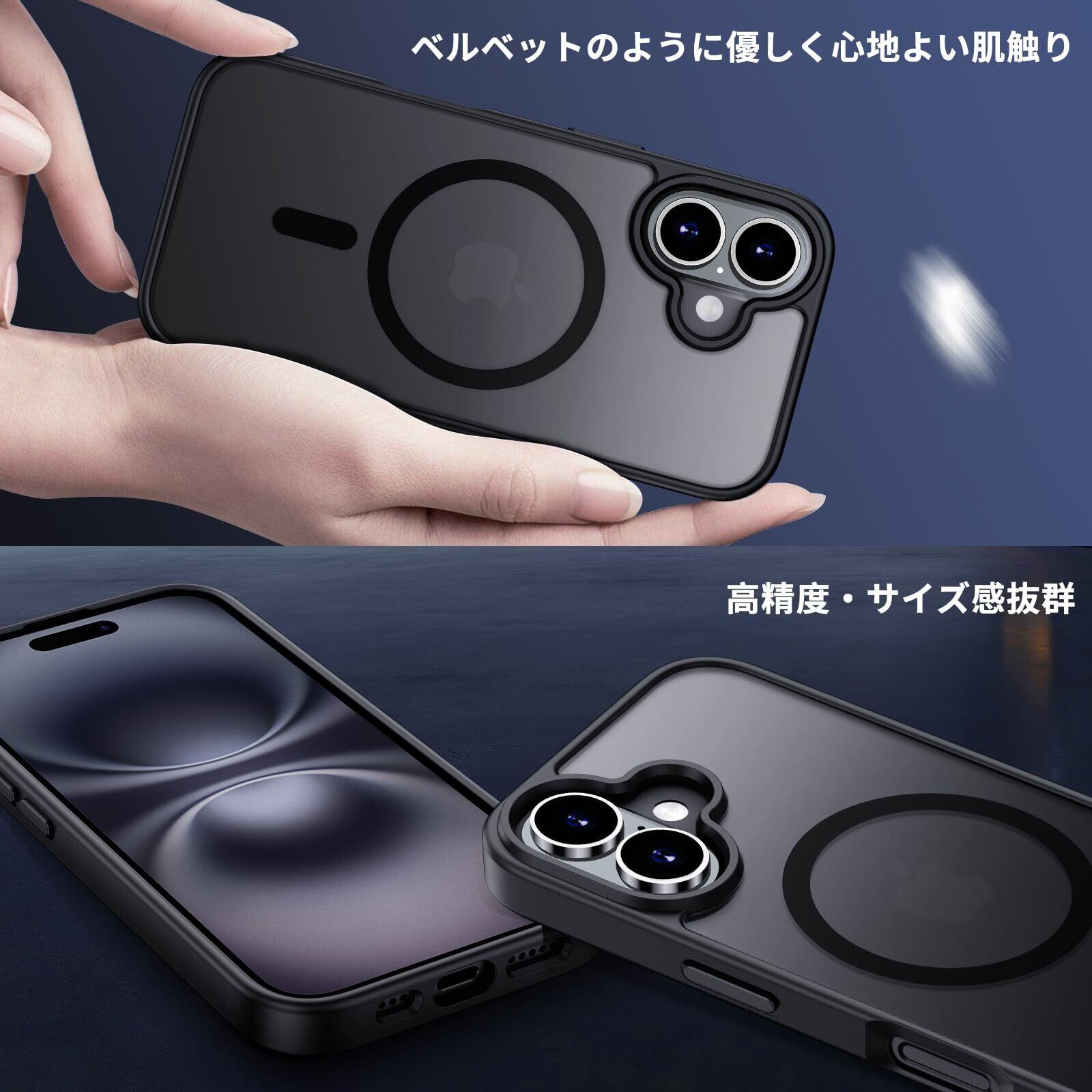 Aunote iPhone16ケース マグネット MagSafe に対応 マット 半透明 スマホケース 耐衝撃 米軍MIL規格 耐久性 黄ばみなし 指紋防止 レンズ保護 ワイヤレス充電対応 アイフォン いphone 16 用 6.1 インチ カバー ブラック