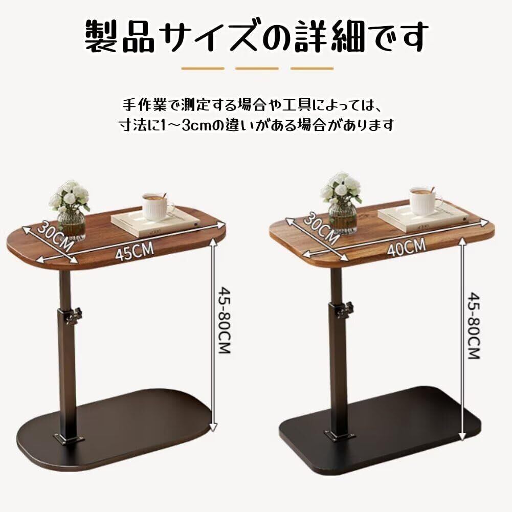 【数量限定】サイドテーブル 昇降式 ベッドサイドテーブル 回転 ソファーテーブル 介護テーブル 高さ調整 耐水 高温に強い 安定 耐荷重がいい 耐久性 小型 省スペース C字型 組立簡単 小型家具 家用 (くるみ色+ブラック, 40*30*45-80CM)