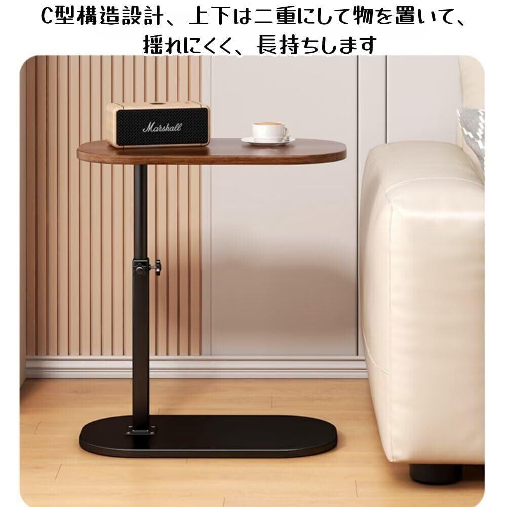 サイドテーブル 昇降式 ベッドサイドテーブル 回転 ソファーテーブル 介護テーブル 高さ調整 耐水 高温に強い 安定 耐荷重がいい 耐久性 小型 省スペース C字型 組立簡単 小型家具 家用 (くるみ色+ブラック, 40*30*45-80CM)