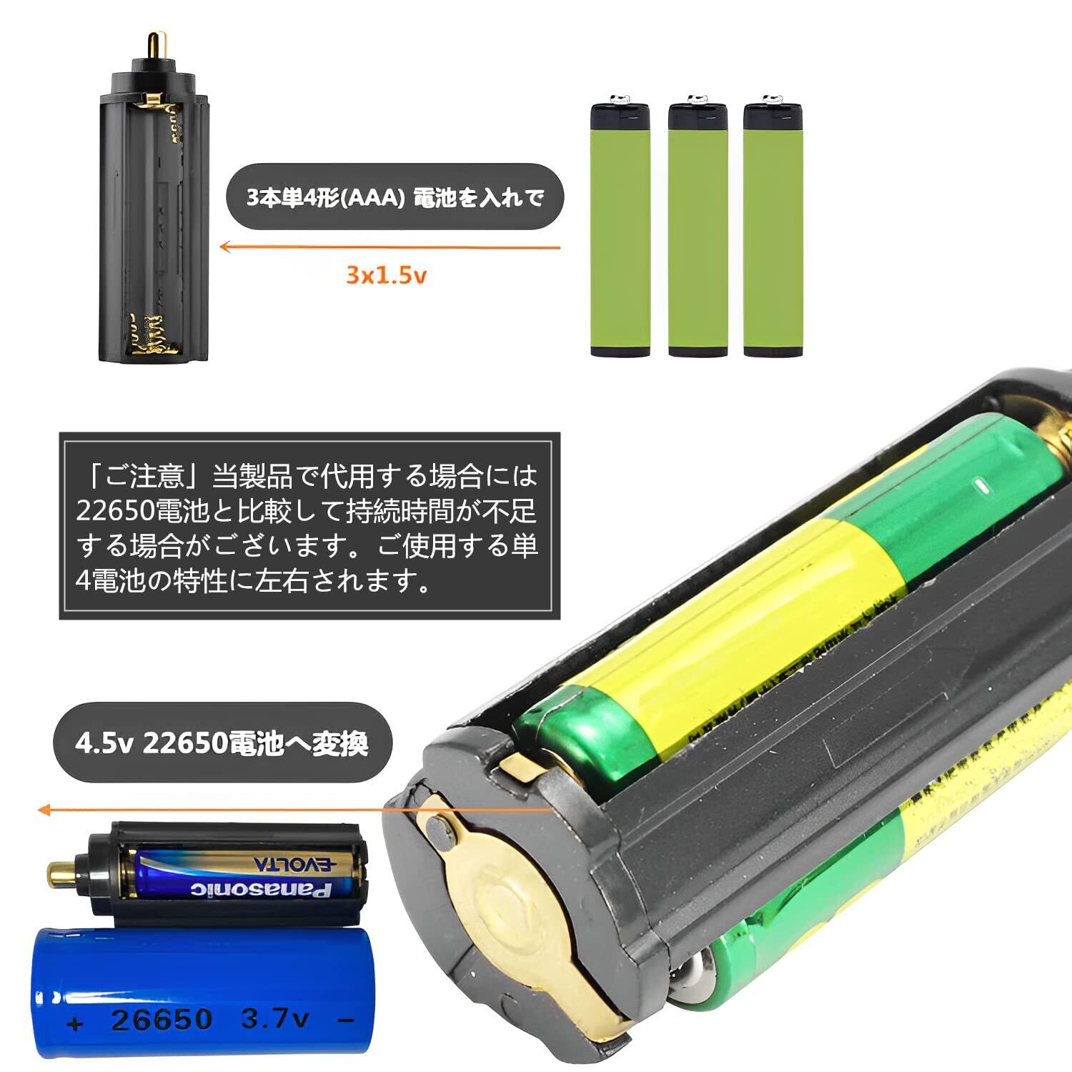 【特徴】22650バッテリー対応のライト等を単4(AAA)サイズの乾電池やバッテリーでご利用いただけます。