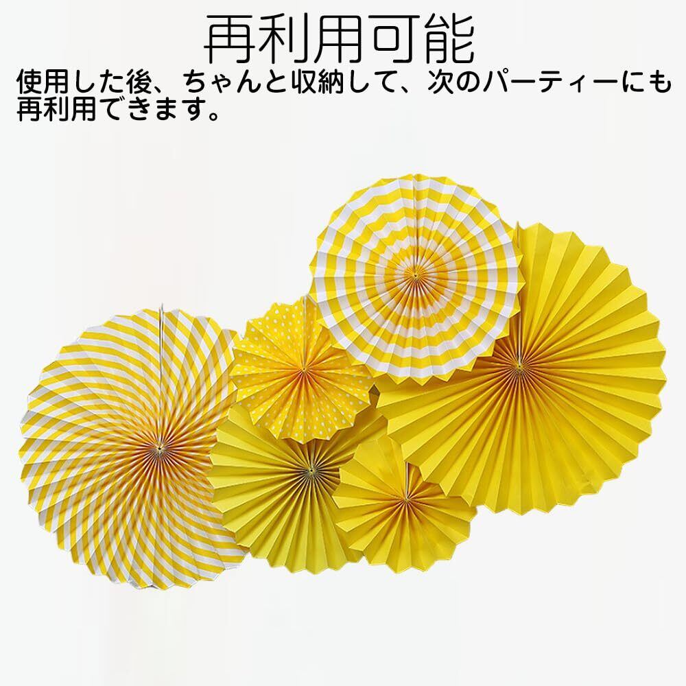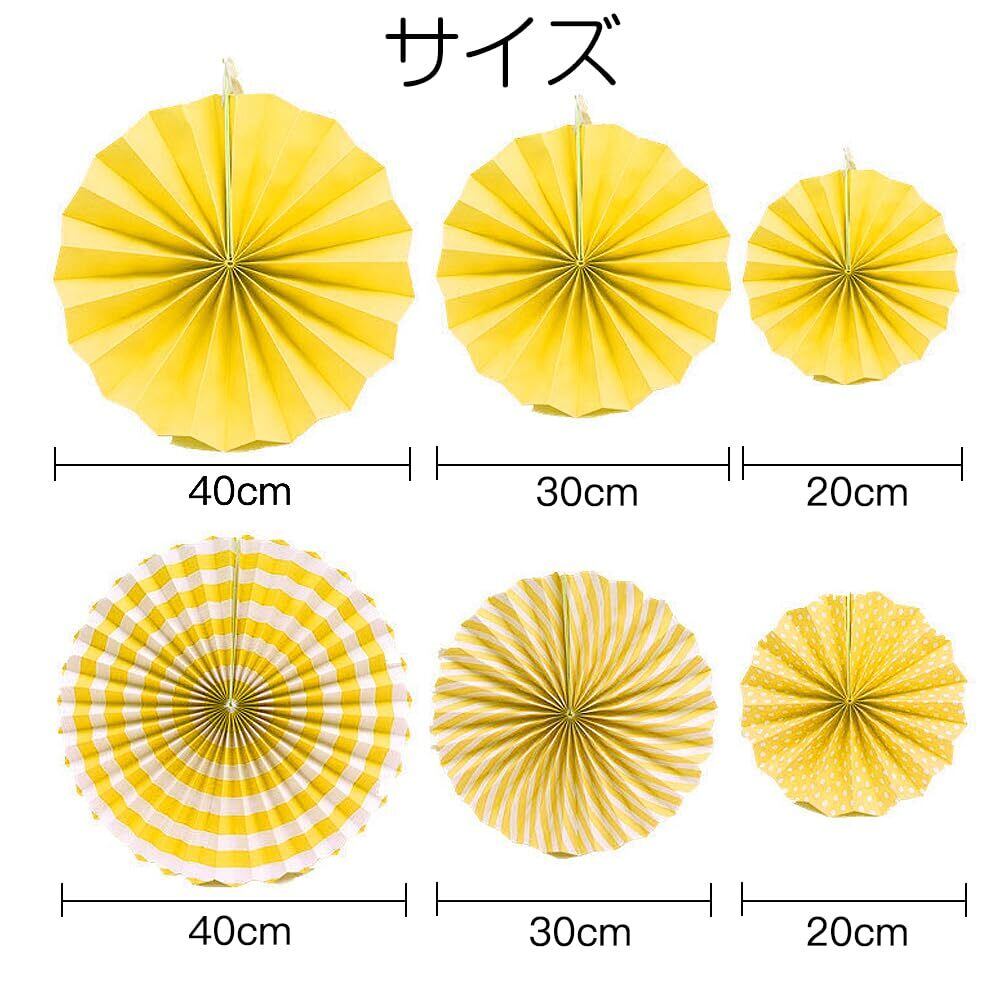【在庫処分】LIANHATA ペーパーファン 6個セット パーティー 装飾 3サイズ 扇子の組み合わせ デコレーション 記念日 バレンタイン 結婚式 お祝い お部屋の飾り つけ (イエロー)