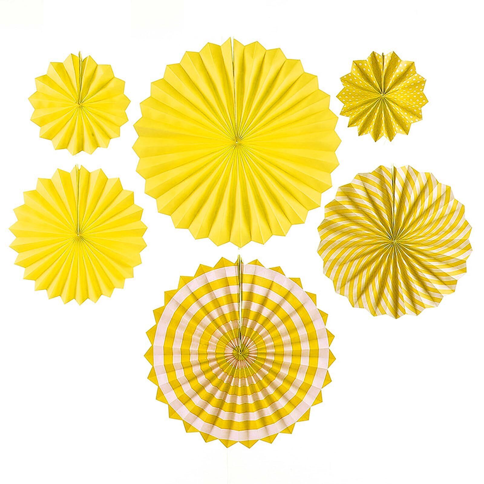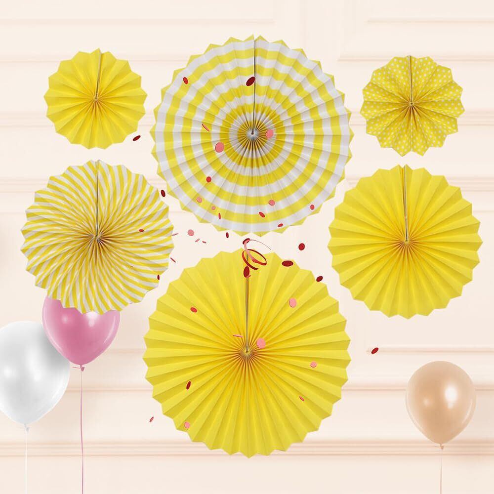 LIANHATA ペーパーファン 6個セット パーティー 装飾 3サイズ 扇子の組み合わせ デコレーション 記念日 バレンタイン 結婚式 お祝い お部屋の飾り つけ (イエロー)