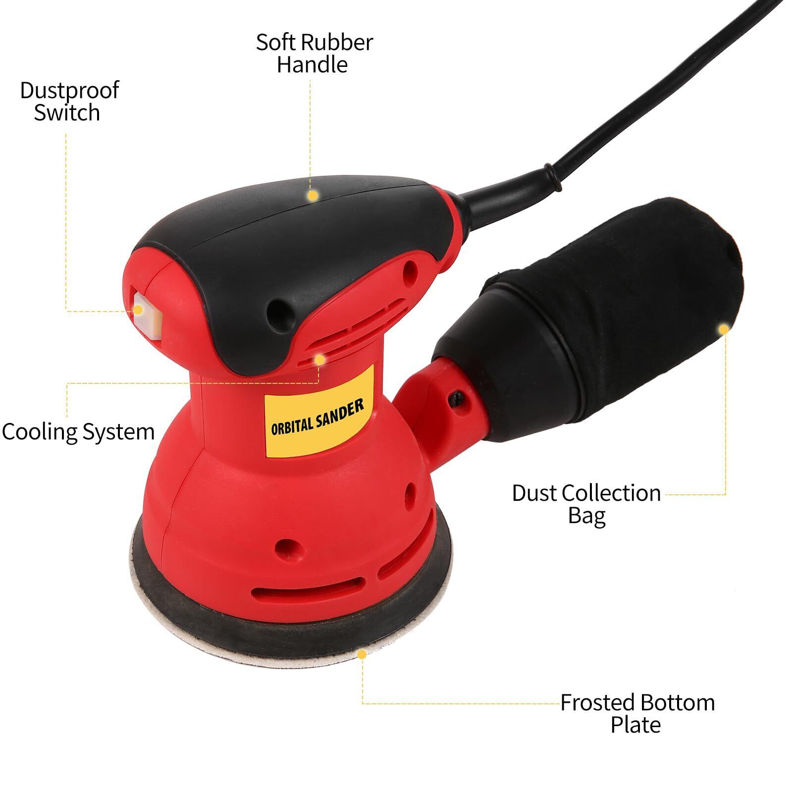 【コンパクトなボディ、柔軟な使用】ランダムサンダーは軽量なボディを備え、コンパクトで使いやすく、金属の錆取り、塗装の除去、木材の研磨、平滑化などのさまざまな表面研磨に使用できます。 DIY初心者でも、熟練した趣味人でも、このランダムサンダーは簡単に使えます。