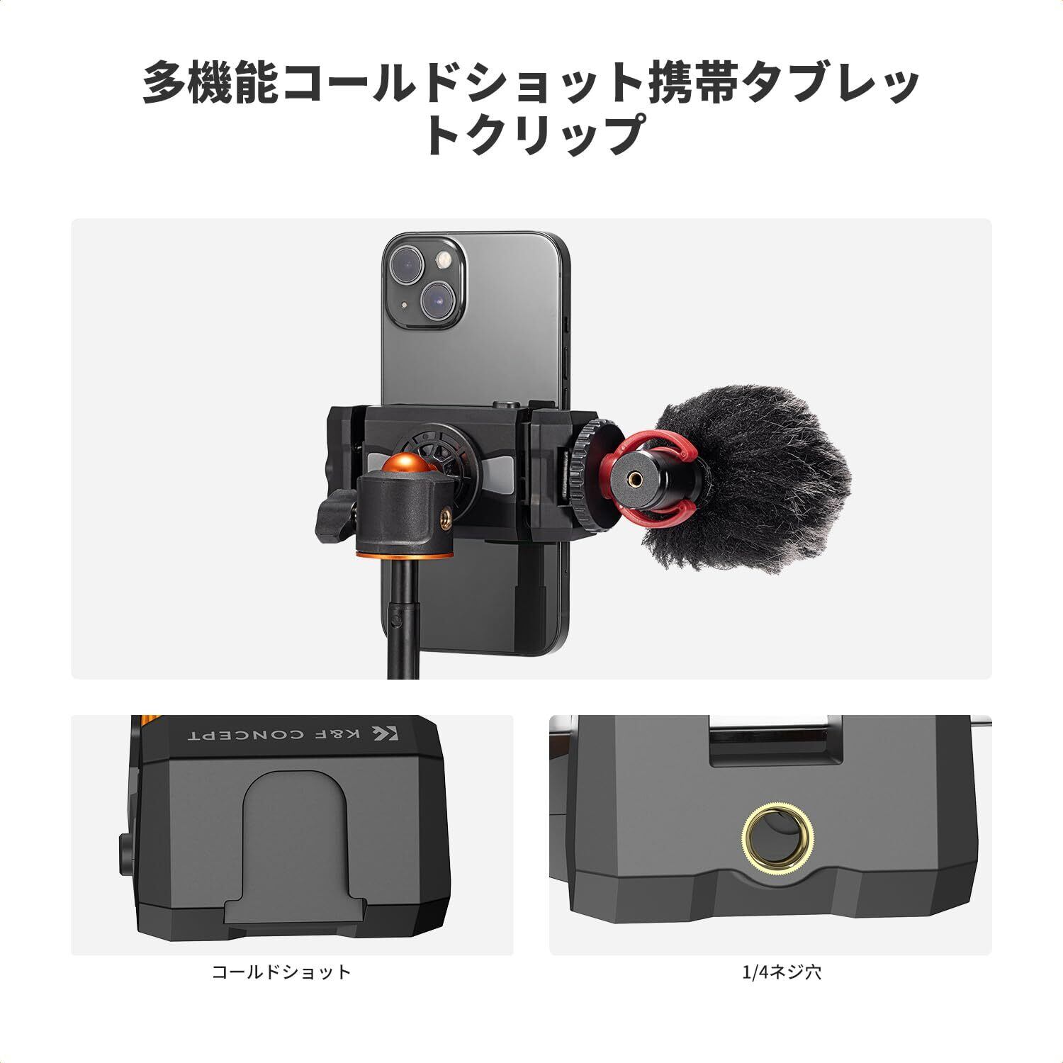 スマートフォン三脚ホルダー K&F Concept タブレットホルダー 調節可能 コールドシューマウント1/4ネジ穴 スマホ/タブレット/三脚/自撮り棒/カメラに適用 iPhone/huawei/ipad air/ipad miniに対応