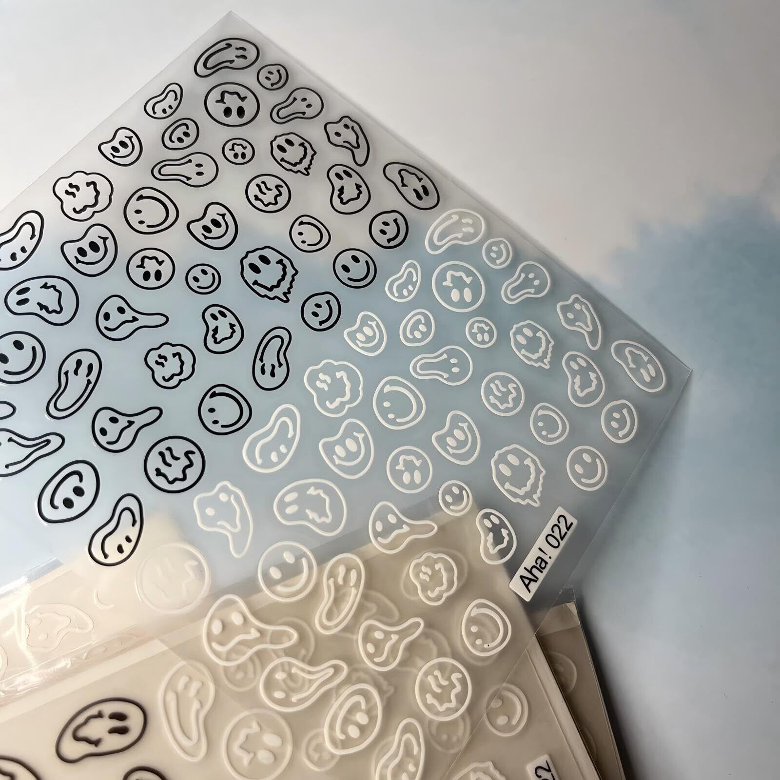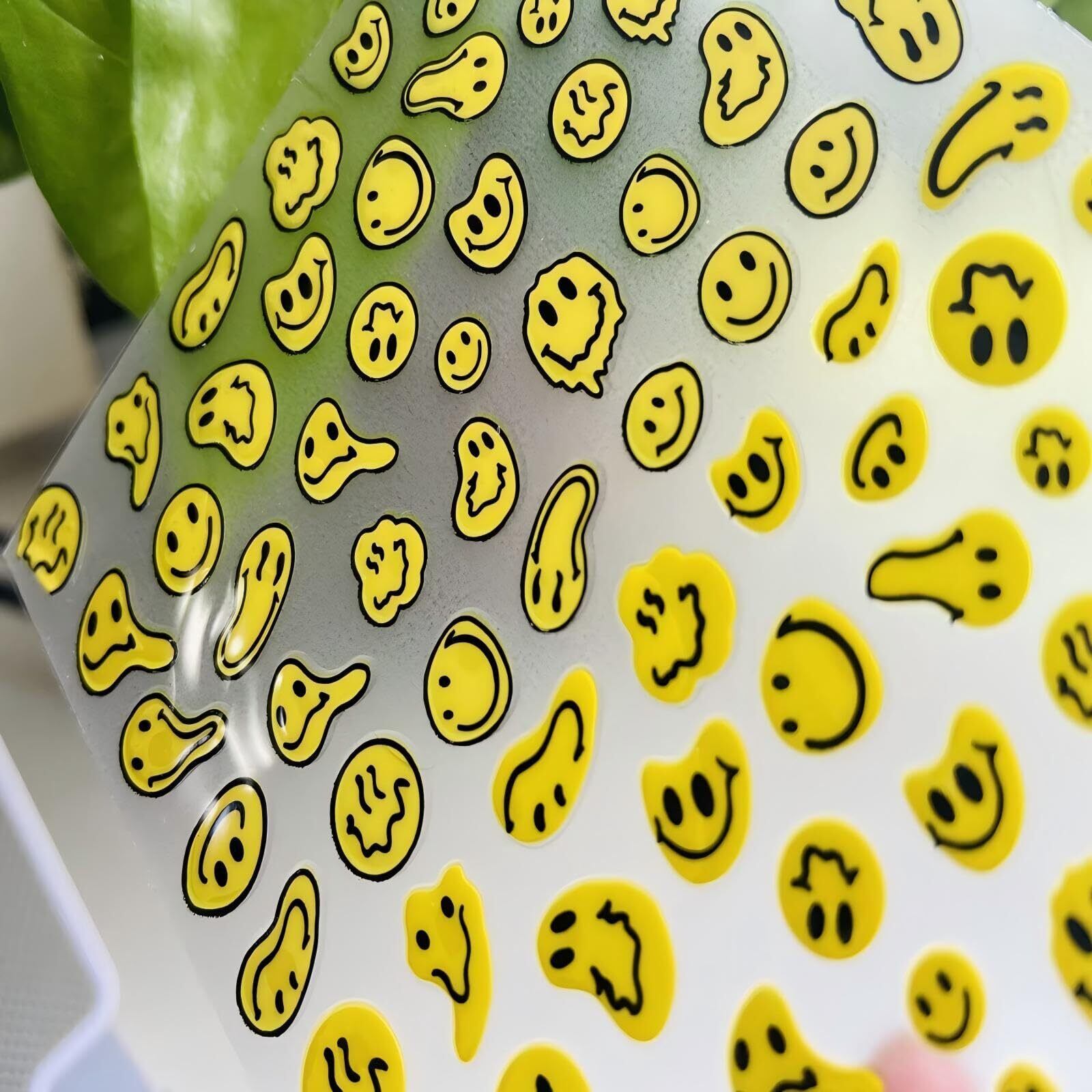 【スマイリーステッカー】: パッケージに説明書付きの新しいツイスト スマイリー ステッカー 3 枚をお届けします。寸法: 8X13cm。そのうちの 1 つは、クリアな質感のエンボス ステッカーで、爪をより生き生きと面白く見せます。