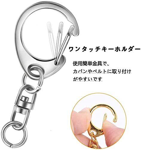 4.ワンタッチキーホルダー、簡単に取りつけ、ハンドメイドキーホルダーに欠かせない金具です。プラ板、レジン、プラバン、ハメパチ、革小物、フェルトなどオリジナルなパーツを下の丸カンに付ければ、おしゃれな、独特なキーホルダーが出来上がります。