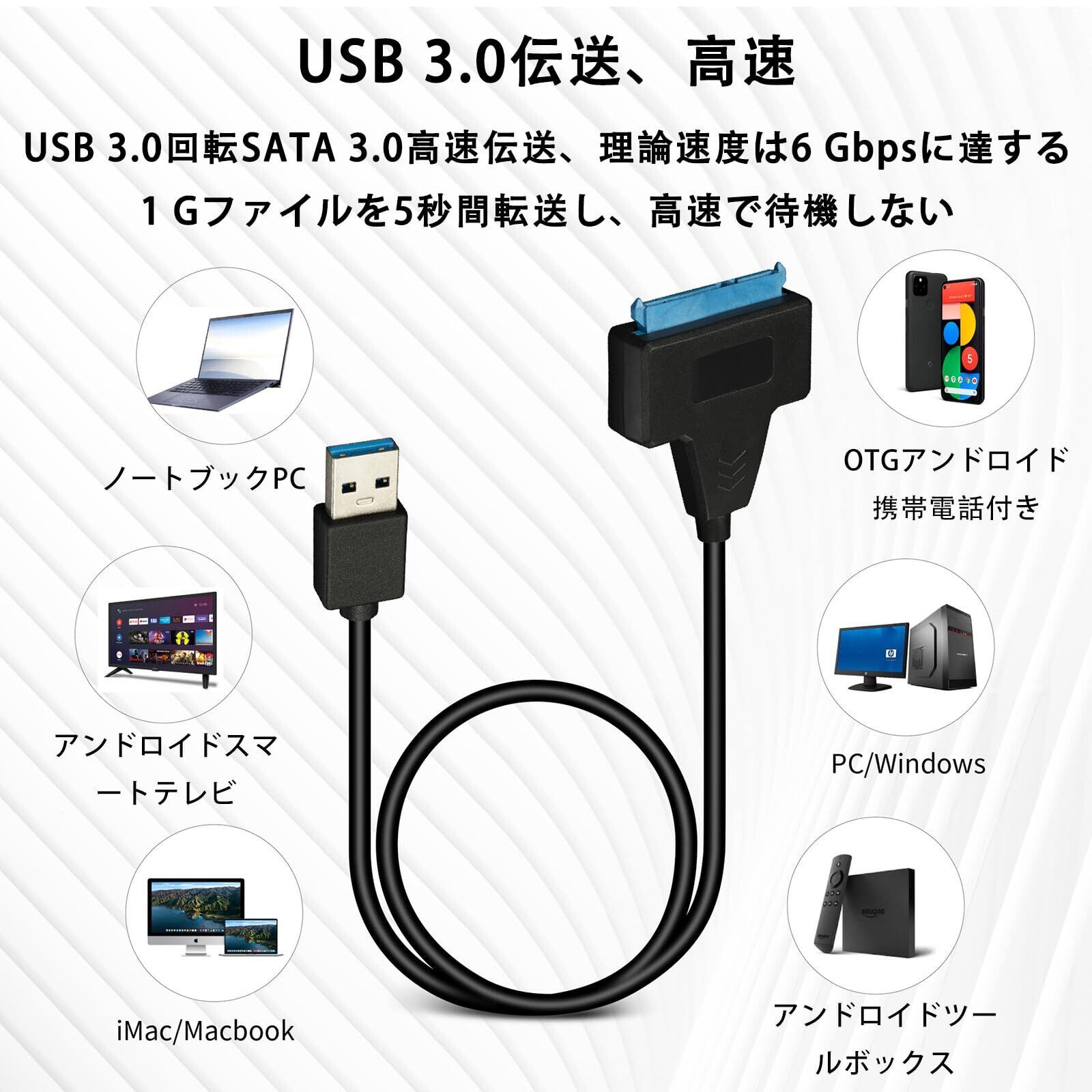 【幅広い互換性】USB2.0の互換性があります USB3.0-SATAケーブルは、2.5インチSATA SSD及びHDDと完全に互換性がありますラップトップやデスクトップに加えて、スマートTVやルーターなどに接続して、クローン作成、バックアップコピー、TV録画、ストレージ拡張に対応できますWindows 7/8/10、Linux、Mac OSおよびその他のデバイスに適しています。