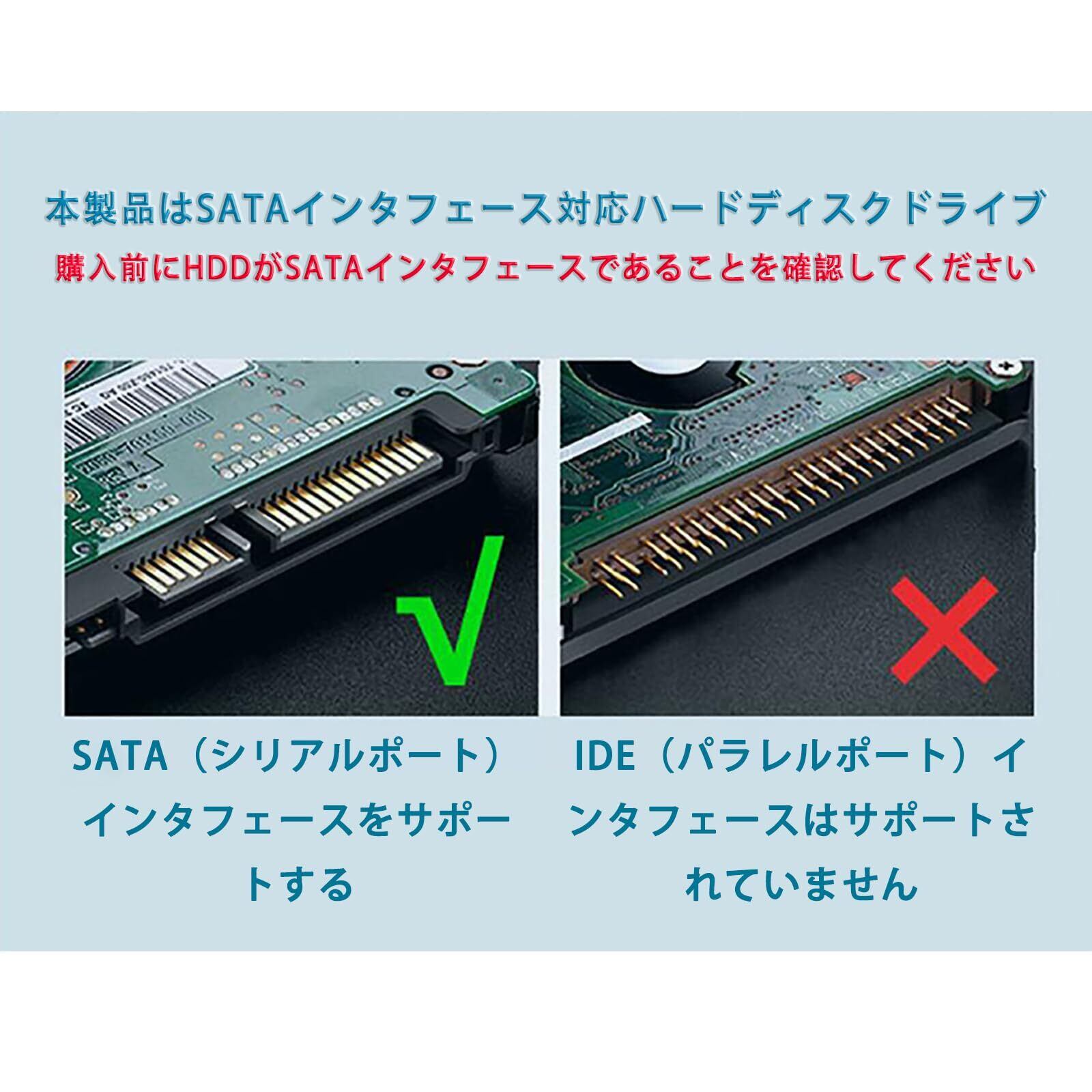 【注意】本製品は2.5/3.5インチハードディスクドライブをサポートしています。3.5インチHDDを接続する場合は、外部電源アダプタに接続してください。本製品には電源ケーブル(DC 5.5*2.5)は含まれていませんので、別途ご購入ください。ATA(IDE)、MSATA、M 2インタフェースと互換性がありませんので、購入前にハードディスクの種類を確認してください。
