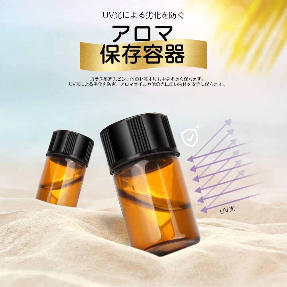 遮光瓶 2ml アロマ保存容器 100本 遮光ビン ガラス製 精油瓶 アロマオイル保存用遮光瓶 茶色 アロマ用遮光瓶 持ち運び用 サンプル用