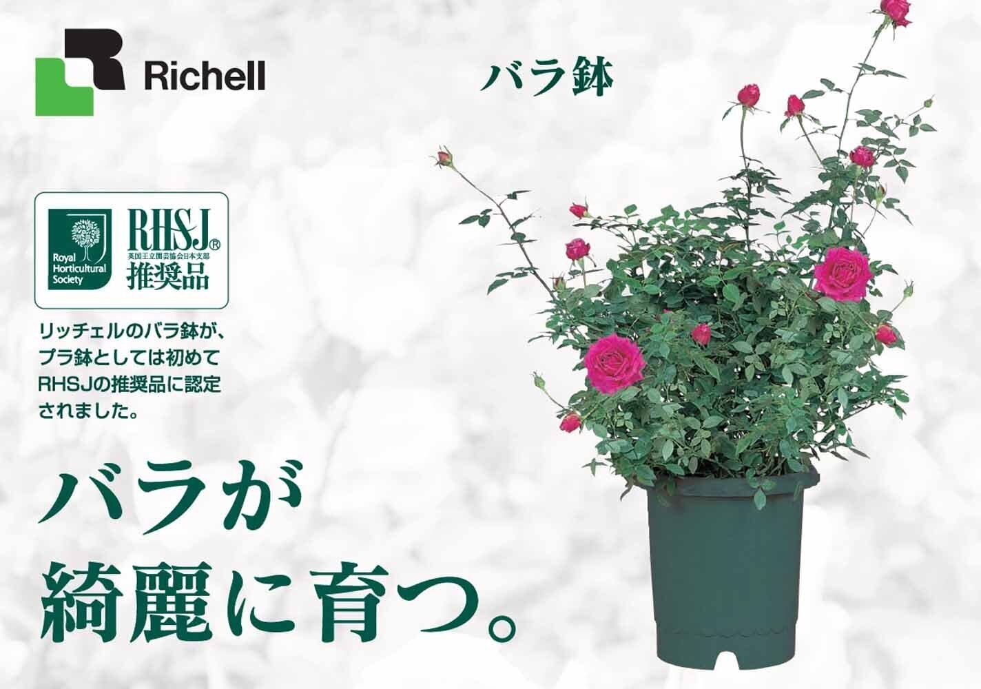 気品の「バラ」をより美しく、上品に魅せる。 プラ鉢としては初めてRHSJの推奨品に認定されました。