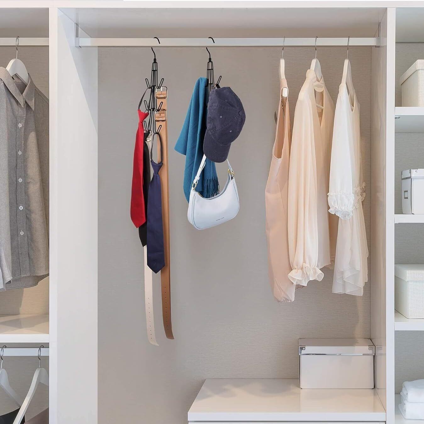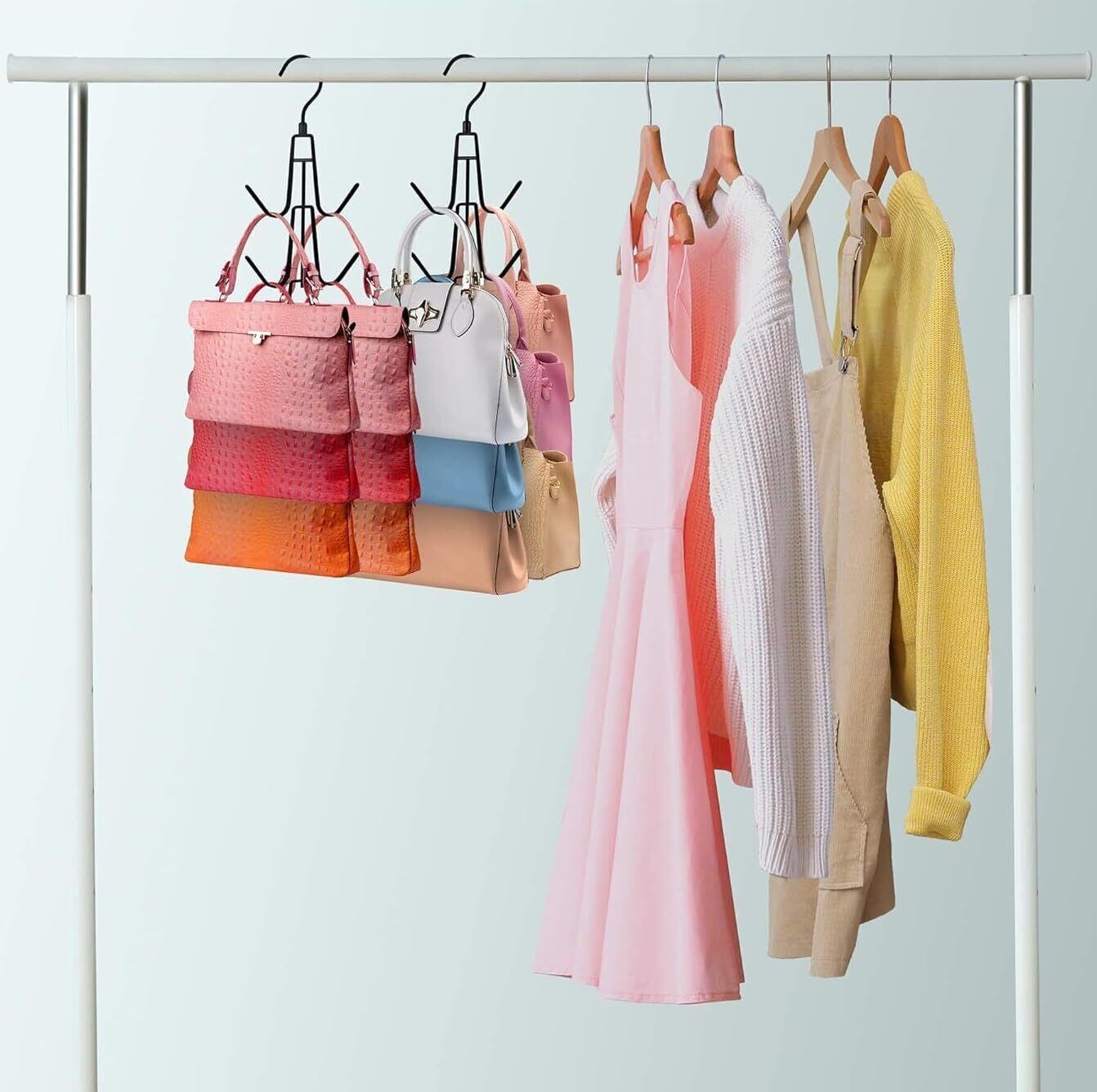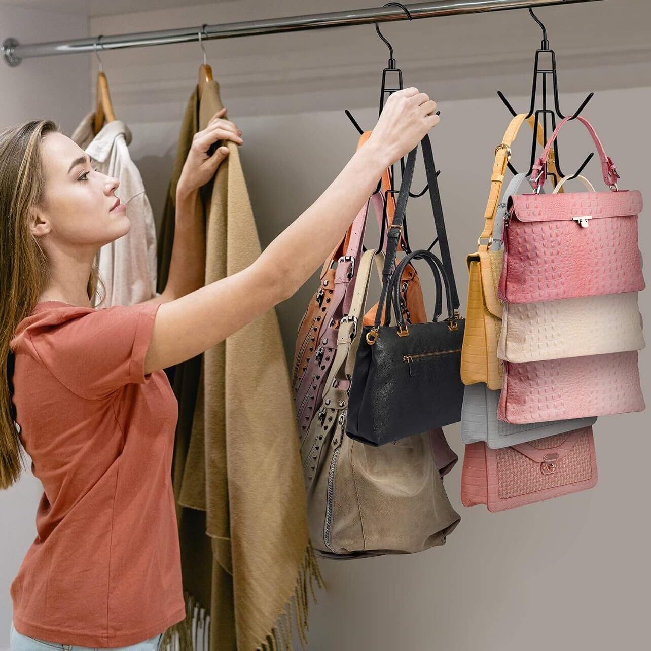 【多機能】:バッグ収納ラックは2個セットで各ラックにはそれぞれフック6個付いています。日常生活の使用に十分です。バッグを収納だけでなく、ベルト、帽子、ベスト、スカーフ、キャミソール、ネクタイ、ワードローブバッグなどを収納するのも適用しています。小物バックや帽子置き場に最適です。