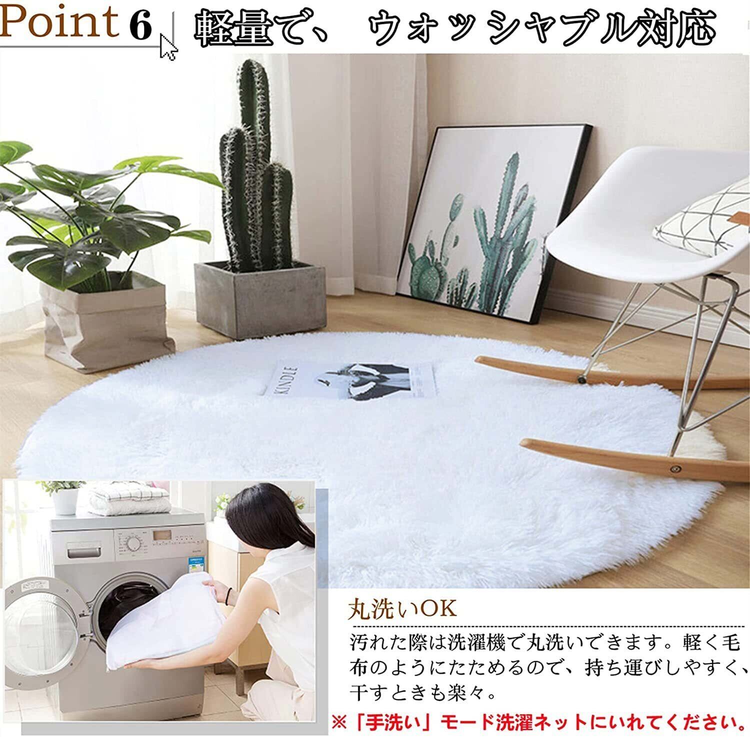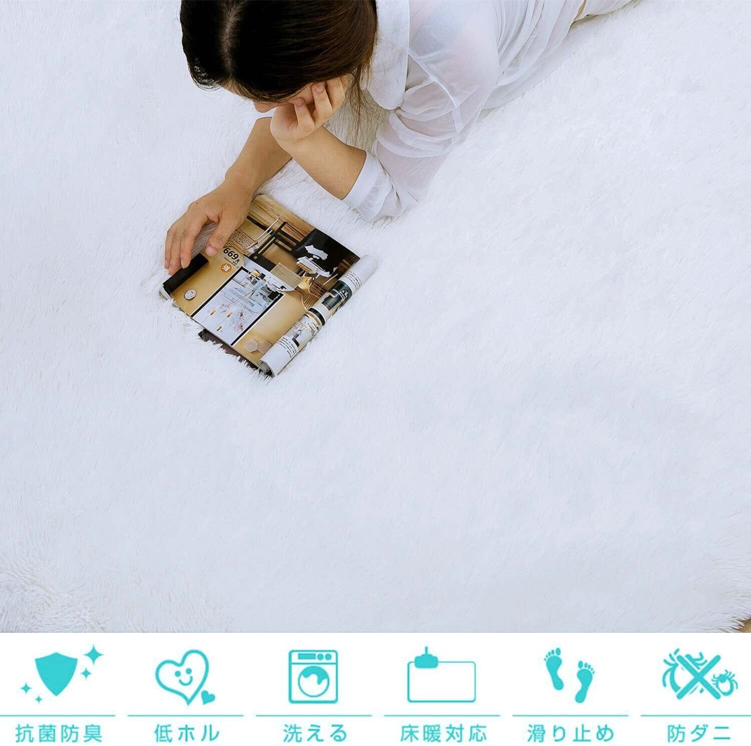 Kinganda ラグマット カーペット 丸型 円形 140cm 白 ラグ ふわふわ 洗える 北欧 滑り止め付き シャギー 防ダニ 消臭 抗菌 オールシーズン ホワイト