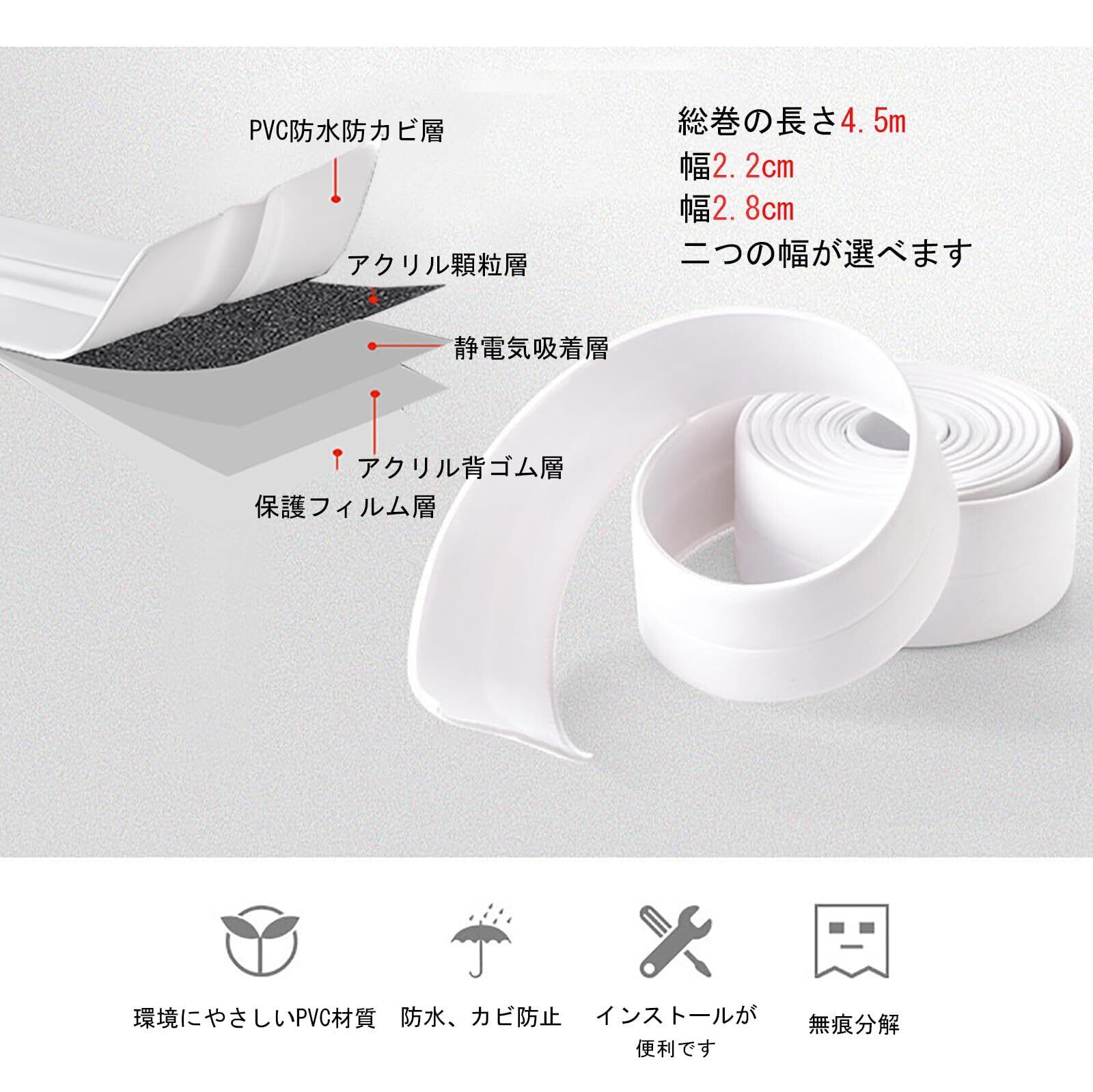 防水テープ:防カビテープは優れた接着性、安定性を持っています。ガラスやタイルに貼ることができます。また、優れたカビ防止機能がついており、カビが生えやすいところも目覚ましい効果があります。隅々の水、汚れ、カビ、ほこりなどを防ぎ、浴室やキッチンのカビによる悩みを解決でき、とても安心です。