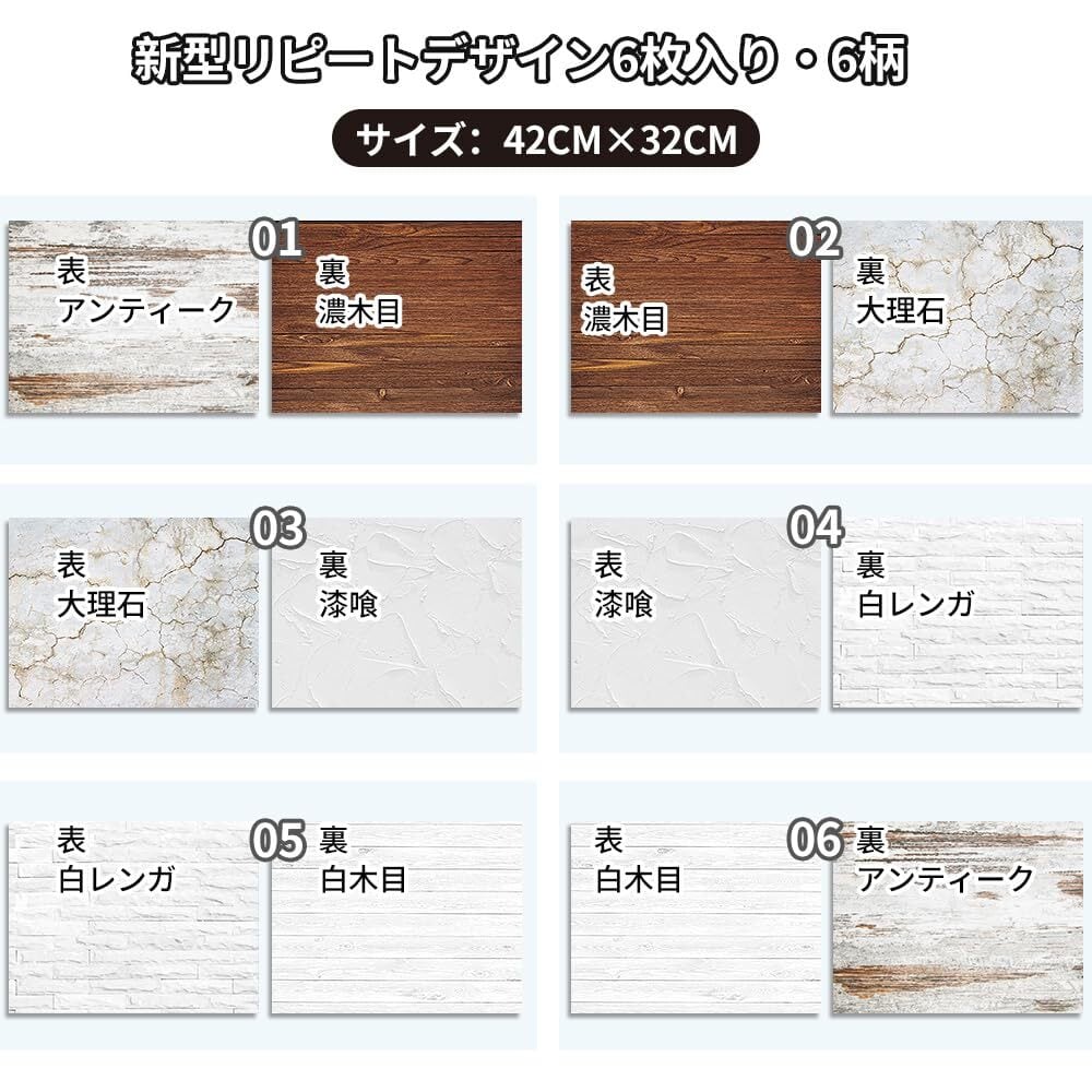 【パッケージ内容】アンティーク・濃木目x1、アンティーク・大理石x1、大理石・漆喰x1、漆喰・白レンガx1、白レンガ・白木目x1 白木目・アンティークx1