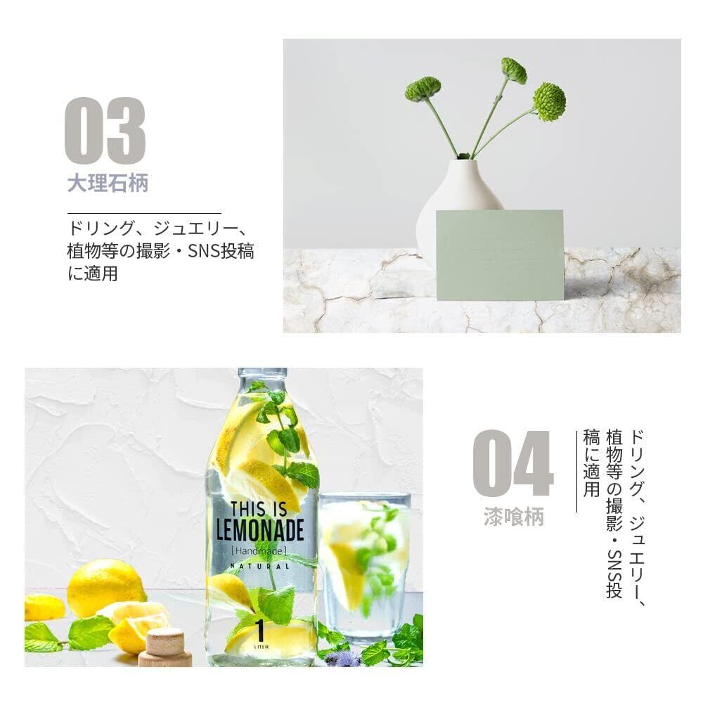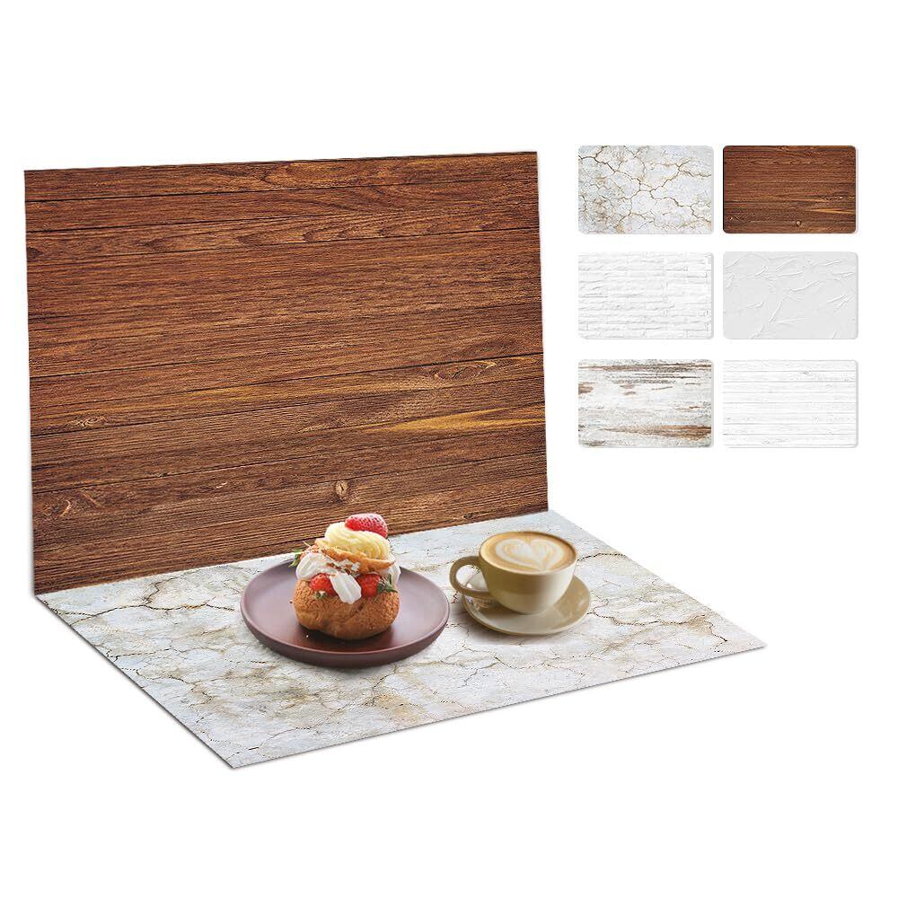 【反射がない】撮影背景シートはフォトグラファーがリアルで写真映えする柄を厳選、反射を防ぐほどマット素材を採用し、被写体を自然に引き立てられます。商品写真の撮影、レストラン、美食、ジュエリー、またハンドメイド小物、化粧品、おもちゃ、インスタ映え、ビデオに、アクセサリなど様々なシーンに適用です。