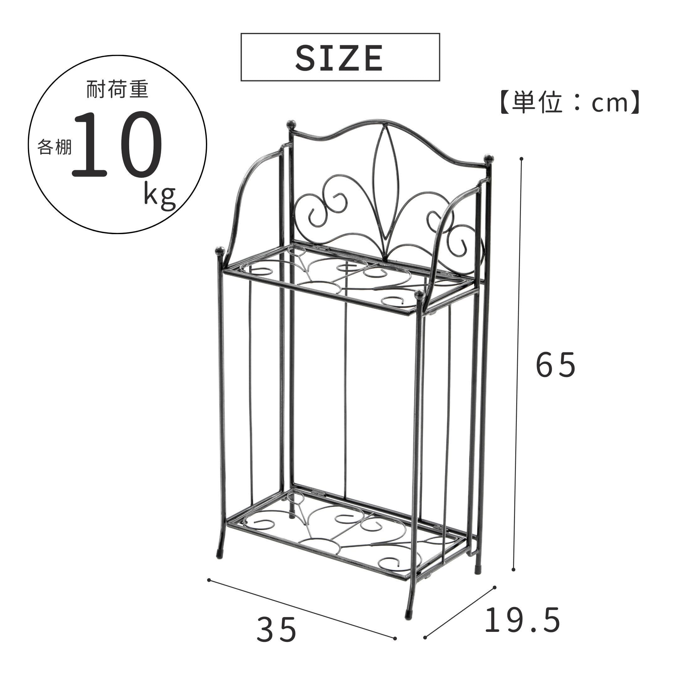 武田コーポレーション 【植物・ガーデニング・折りたたみ】 ブラック 35×19.5×65cm 折りたたみフラワースタンド2段 OFWS3418