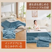 【汎用性】EMMEのこたつ布団は模様がある面に温かみでユニークな模様を採用しております。おうち時間がもっと好きになります。家族でわいわい囲んだり、一人でまったりくつろいだり。オールシーズン使える布団は、鍋パーティーをしたり、勉強やパソコン作業も快適な広さです。お部屋のや心にずっと過ごしたい居心地を。また、無地の面を使っても、模様の面を使っても、お部屋の雰囲気がアップできて、本当に実用性と装飾性が共存するこたつ掛け布団です。