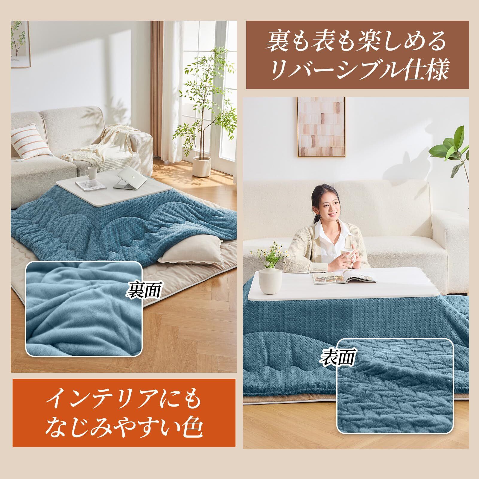 【ふわモコ暖かいフランネルこたつ布団】こたつ掛けふとん表も裏も200g/m²高密度フランネル素材を採用しており、適度な厚さで、ふわふわ、軽くて暖かい。きめ細かい繊維みとふんわりした触り心地が魅力です。なめらかでソフトな肌触り、保温性も高いので、コタツ布団に入った瞬間リラックスしてヒンヤリ感もなく、すぐに暖かさを感じることができます。ふわふわ、ぽかぽかで、寒い時期には欠かせない省エネのアイテムです