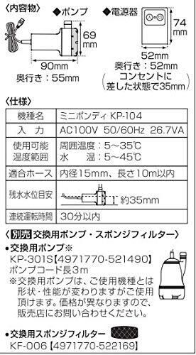 工進(KOSHIN) 家庭用バスポンプ AC-100V KP-104 風呂 残り湯 洗濯機 最大吐出量 14L/分 (3mホース時) 水道 ホース 内径 15mm 使用可能