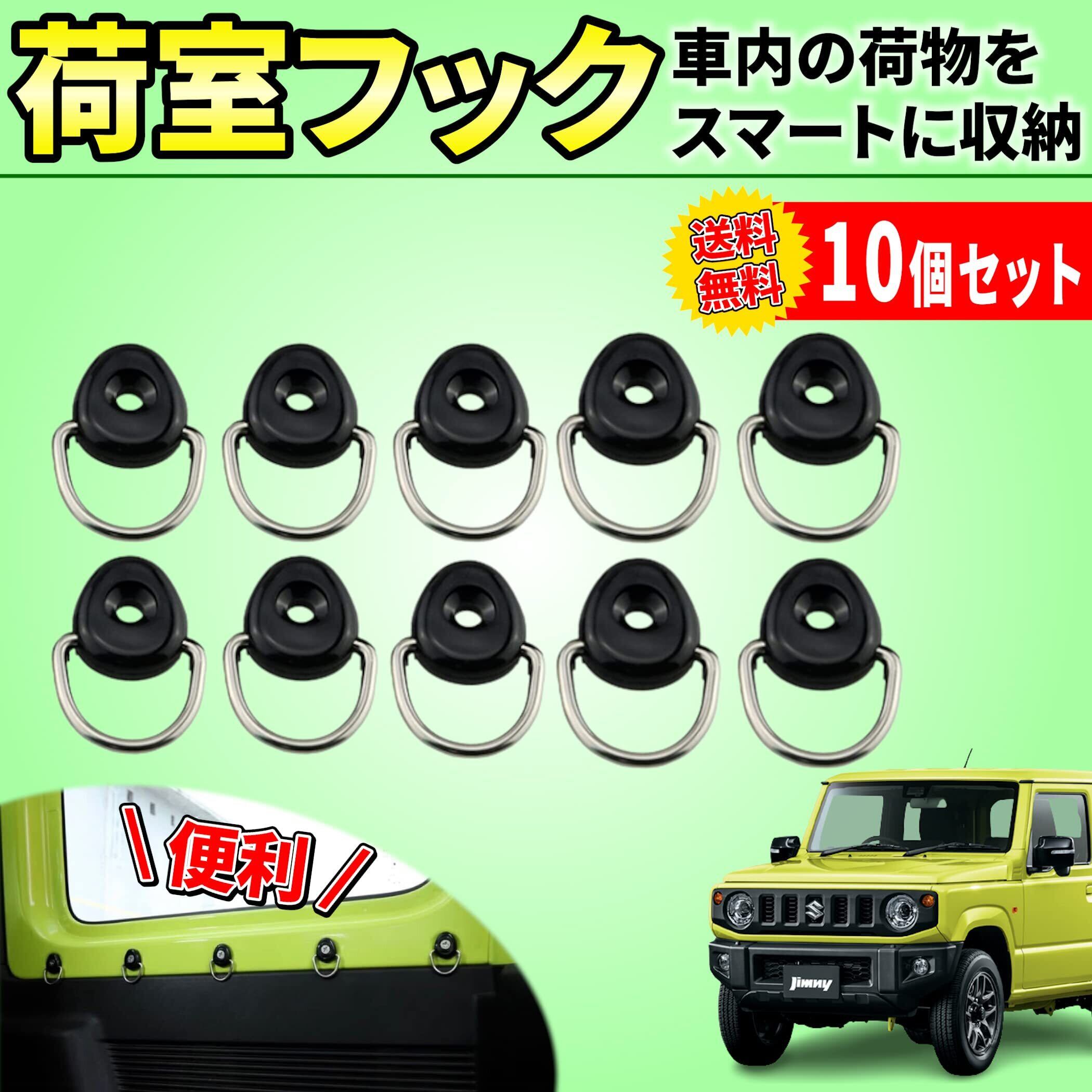 【特価商品】Lezalic ジムニー トランク アクセサリー 荷物 落下防止 分離 収納 カスタム リアゲート 隔離 ネット カーテン 網 スズキ 汎用 (荷室フック10個)